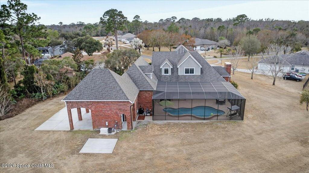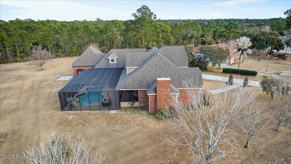 Experience space, privacy, and luxury in this stunning 6 bedroom, 5 bathroom pool home on 1.09 acres! With 4, 155 square feet of living space, this thoughtfully designed residence offers room for everyone. The primary suite is conveniently located on the first floor, creating a private retreat with easy access to the main living areas. Need more flexibility? There's an option to create an additional first floor in law suite or flex space, complete with its own private bath-perfect for guests or multi-generational living. Step outside to enjoy the beautiful 2-year-old pool, ideal for relaxing or entertaining, all surrounded by peaceful nature views. The expansive wrap-around porch invites you to unwind and take in the serene setting. Tucked away on a quiet cul-de-sac, yet just 35 minutes from Orlando International Airport, this home offers the perfect blend of tranquility and convenience. Close to beaches, shopping, schools, and everything you want in a Florida home!