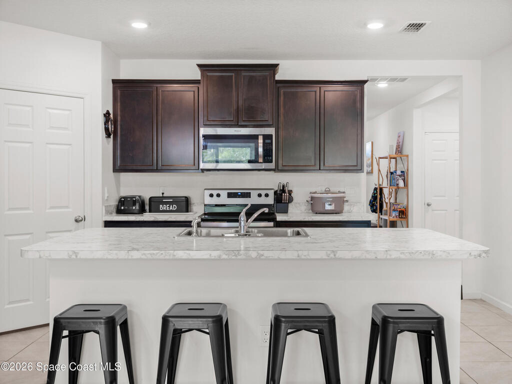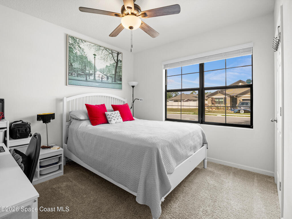 Tucked inside one of Cocoa's most desirable communities, 1759 Morely Drive delivers the Florida lifestyle you've been searching for! This stunning 4-bedroom, 2-bath home features an open-concept layout with tile throughout the main living areas and carpet in the bedrooms. The gourmet kitchen boasts dark espresso cabinets, stainless steel appliances, and a large island perfect for entertaining. The spacious primary suite includes a walk-in closet & a custom built-in walk-in shoe closet and a double-vanity en suite bath. Three additional bedrooms each offer ceiling fans and generous closet space. Enjoy Florida living year-round on the enclosed lanai overlooking a fully fenced backyard. Adamson Creek offers a community pool, clubhouse, playground, jogging paths, a lake with a dock you can fish on, and a community park! Minutes to SR-528, Cocoa Beach, Port Canaveral, Kennedy Space Center, and top-rated schools.Schedule your tour today!