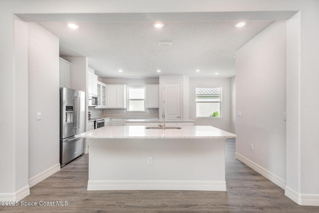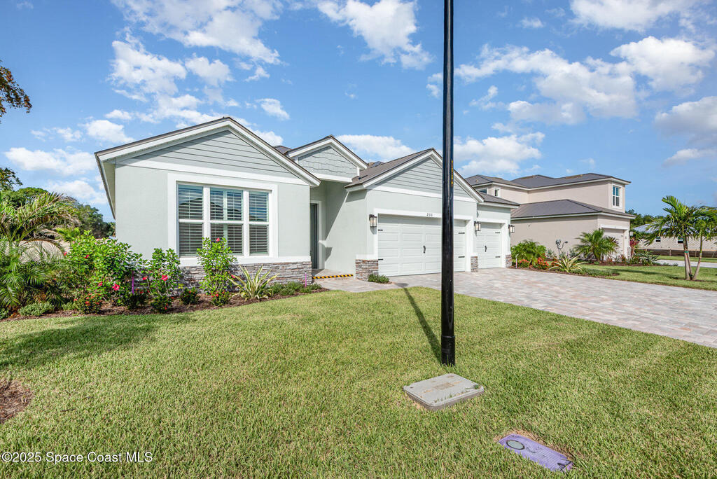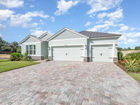 Introducing the Redbud at Riverwalk of Cocoa - a beautifully designed 1 story home with 2, 312 sq. ft. 4 bedroom, 3 bathrooms and a 3 car garage with an Epoxy Coating for an added level of elegance. Its stunning curb appeal includes a paver driveway, lush landscaping and an irrigated lawn with its own irrigation pump. Luxurious plank flooring in main living and wet areas and carpeting in the bedroom for a warmth feeling. The Chef-inspired kitchen features 42'' cabinet with a set of glass door, quartz countertop and back-splash, appliances including the French door refrigerator and to top it off with a double island. The spacious primary suite offers dual sinks with the Bank of drawers and separate shower with a double walk in closet. Built with energy efficient features and smart home. For added safety, impact windows was installed in this home.