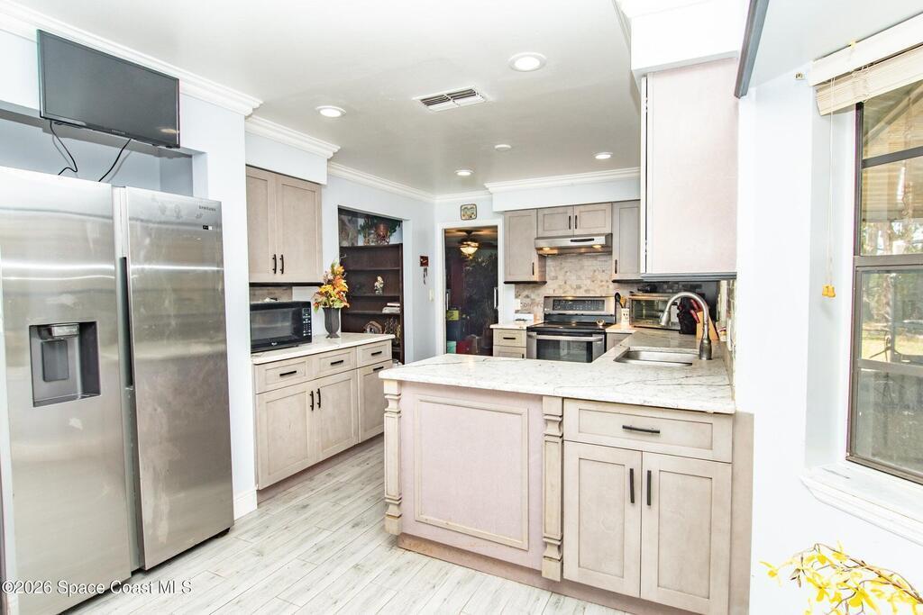 Exceptional 3 Bed/3 Bath home with situated on a generous 1.07-acre lot in established Canaveral Groves. Smart recent updates include modern kitchen, 2019 AC unit, & 2016 roof. NO HOA restrictions - complete ownership freedom. Abundant expansion potential with room for in-law suite, pool, or recreational area. Quiet, well-maintained community with mature landscaping and strong neighborhood character. Conveniently located near Kennedy Space Center (20 miles), pristine Cocoa Beach, Brevard Zoo, historic Cocoa Village, Port Canaveral, and multiple parks. Ideal for families, investors, or lifestyle seekers seeking privacy with proximity to Space Coast attractions and modern amenities. Excellent local schools - appeals to families seeking education quality. See supplement remarkshttps://www.brevardschools.org