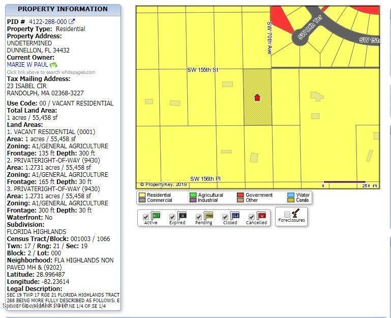 01.27 acre lot zoned Agricultural available in the Florida Highlands subdivision of Dunnellon. Situated along some of Florida's most beloved rivers, Dunnellon, about an hour south of Gainesville, is a paddler's paradise, where visitors can find laid-back waterfront restaurants and plenty of opportunities for outdoor recreation, both on and off the water. This lot is zoned agricultural, and is located close to Marion Oaks. From Highway I-75 North, take exit 341 for Marion County 484 towards Belleview/Dunnelon and turn left onto SW Hwy 484 for 4.6 miles, turn left on Marion Oaks Manor for 1.4 miles, right on 66th Avenue Rd. for .5 miles, right on SW 151 Loop for 95 feet, left on SW 151st Place for 180 feet, and left onto SW 70th Ave for .4 miles until you arrive at the corner with SW 155th Street.