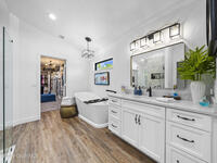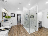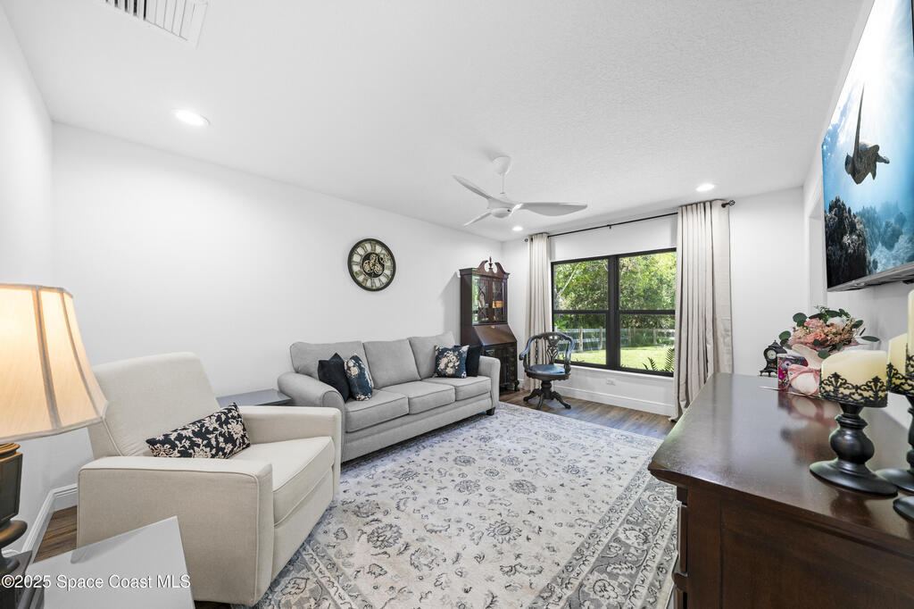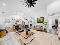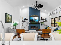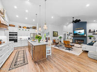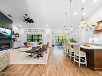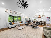 Welcome to this stunning 4-bedroom 4-bathroom(plus office)(plus multi-generational area), modern farmhouse built in 2023, offering 2, 901 square feet of thoughtfully designed living space on over half an acre of Florida beauty. Set amid native pines and palms, this home effortlessly combines clean, contemporary lines with natural textures, making it equally suited for relaxed family living and elegant entertaining. Step inside the expansive great room where vaulted ceilings, rich wood-look flooring, and a dramatic fireplace create an airy, welcoming ambiance. The gourmet kitchen is a chef's dream, featuring an oversized quartz island, induction stove top, custom range hood, and abundant cabinetry. A dedicated office with French doors provides a private and light-filled workspace for working from home or studying. Designed with flexibility in mind, the home features a true multi-generational suite with a private bedroom, full bath, and its own living room. Hurricane Windows.