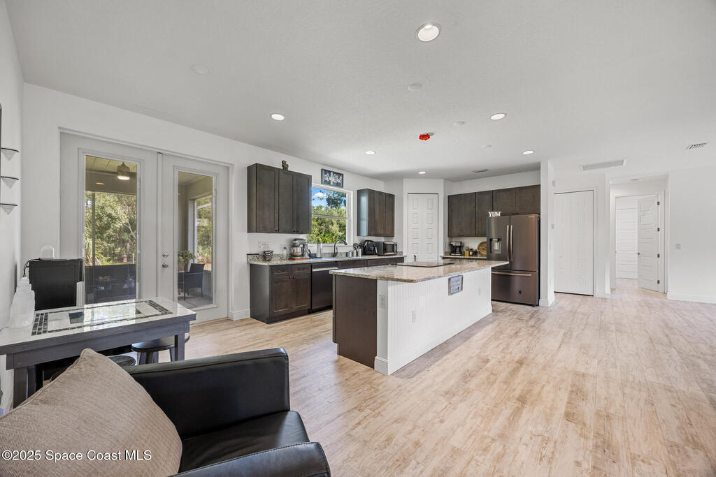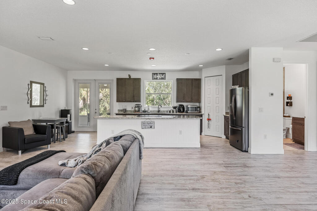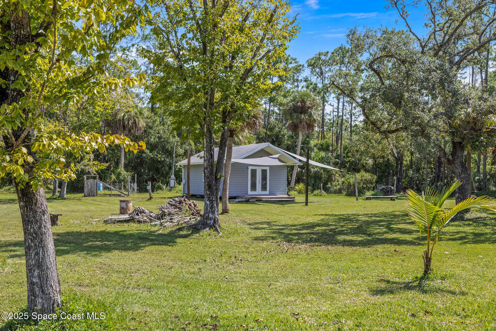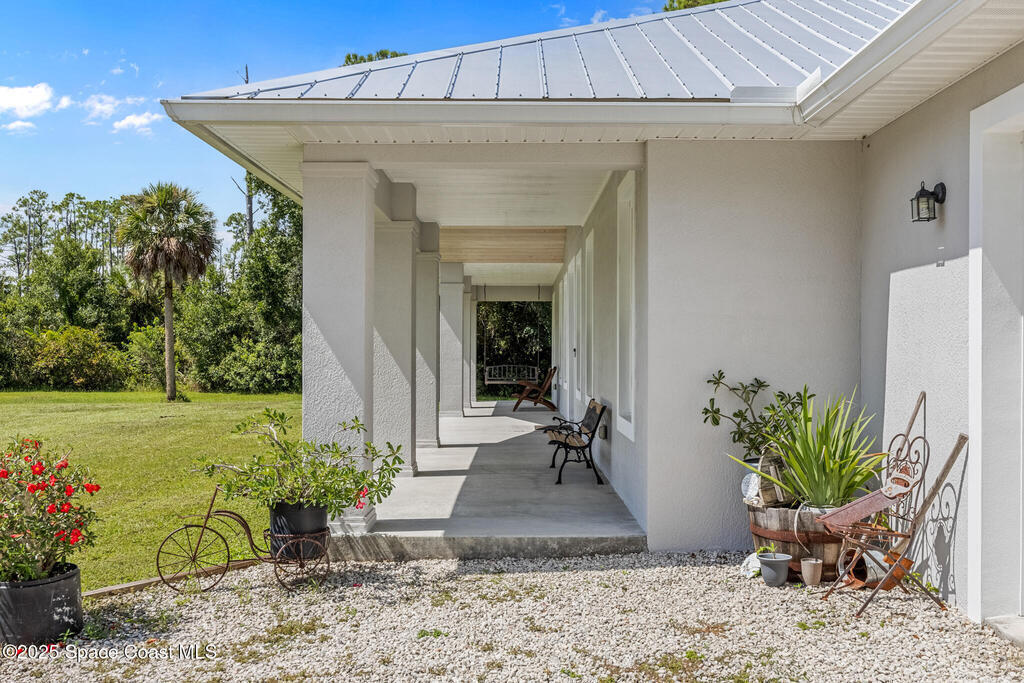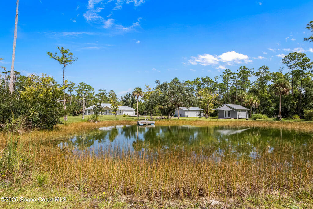 Looking for land, privacy, and real utility without giving up modern comfort? This custom 2020 home sits on 3.97 acres with an artesian-fed pond and scenic trails, so mornings start with birdsong and coffee on the porch. A finished cabin with electricity flexes as guest space, studio, or quiet office. A 900 sq ft workshop with a hydraulic car lift is ready for projects and serious storage. Inside, an open layout with volume ceilings, Italian tile, granite counters, Tuscan black appliances, and impact windows; bright and solid. The primary suite is a retreat with an oversized tiled shower and a freestanding tub. Outdoor living shines with a 480 sq ft front porch and a 336 sq ft screened back porch under truss, plus room for a future pool. Country feel with quick connection to I-95, US-1, Valkaria Airport, The Habitat Golf Course, and Grant-Valkaria Community Park. Minutes to boat ramps and riverfront restaurants in Sebastian and Melbourne.