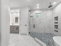 Looking for a Multi-generational home? This 2025 Brand new home was just recently completed. As you enter the home you're greeted with a large open floor plan containing the Family Room, Island Kitchen, & Dining. There is a 5th bed/office in the front of the house w/ windows facing the driveway. The master bed & bath is tucked away in the back corner of the house with shower & tub combo behind frameless glass is so luxurious. The 2 other bedrooms are on the opposite side with a jack & jill bath, each having their own private sink. The Laundry & Mud room separate the in-law suite from the rest of the house & also boasts a family room, kitchenette & full bath. This custom home is loaded w/ extras like 8' interior doors, Impact glass windows & doors, tray ceilings, 60'' x 10'' porcelain wood look tile throughout. Additionally there is a 400 sq ft 2nd story bonus rm w/ Full Bath. For the Hobbiest the Huge garage is a real treat!