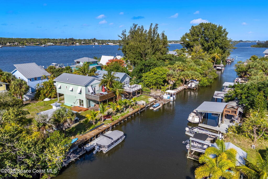 Escape to VIP Island, a one-of-a-kind waterfront community only accessible by boat! This two-story island retreat sits on a double lot with 100 feet of water frontage, private dock, and seawall, ideal for fishing, kayaking, or watching dolphins glide by. Relax in your hammock on the large covered patio or enjoy sunrise and rocket launches from the upstairs balcony. The home offers a private guest suite downstairs with full bath, and upstairs an open kitchen, dining, and living area with vaulted ceilings, two bedrooms, a full bath, and a spacious loft with endless possibilities. Entertain under the outdoor gazebo or plan your future resort-style pool with room to spare. Just 5 miles south to ocean access through Sebastian Inlet and 15 minutes by boat to an uncrowded beach. Whether a weekend escape or full-time home, this is Florida island living made simple. Schedule your private island tour today!