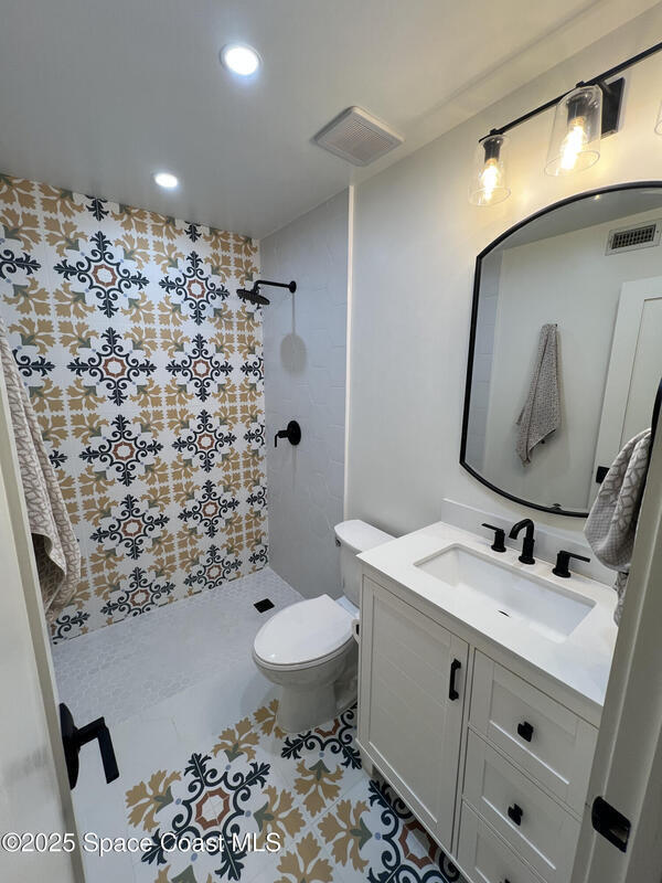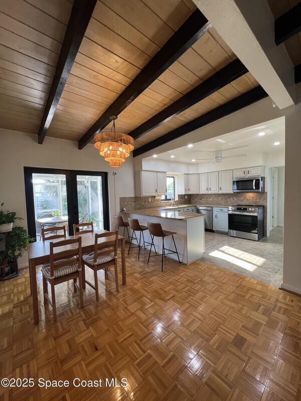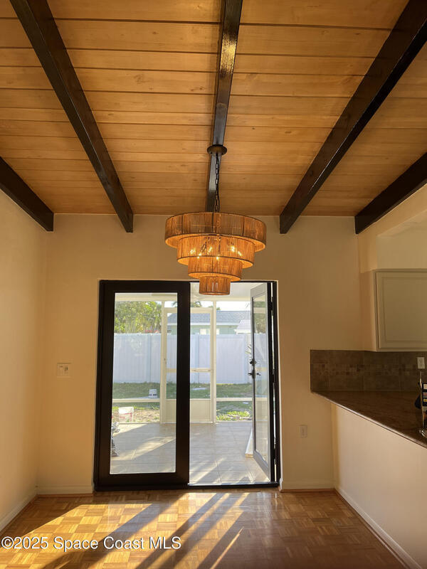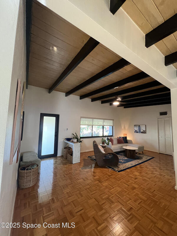 Coastal Living & Modern Comfort - Newly Renovated Home Adjacent to the Beach!Beautifully renovated 3-bedroom, 3-bathroom single-family home located in a peaceful Indialantic neighborhood. Fully updated in 2024, this 1, 352 sq ft home offers modern comforts just a short 5-minute walk to the beach.Step inside to find tall ceilings with exposed wood beams, rich hardwood floors throughout, and an airy open layout. The kitchen features brand-new appliances, complemented by a new AC unit.The 0.23-acre lot offers plenty of room. Landscaping service is included and stays green year-round thanks to a full sprinkler system. The yard includes avocado and mango saplings, a flowering royal poinciana, and vibrant bougainvillea. A screened-in back patio with a ceiling fan provides breezy, bug-free comfort.Located in a quiet and safe neighborhood, you'll enjoy the proximity to schools as well as Downtown Melbourne and Eau Gallie, both just 10 minutes away.