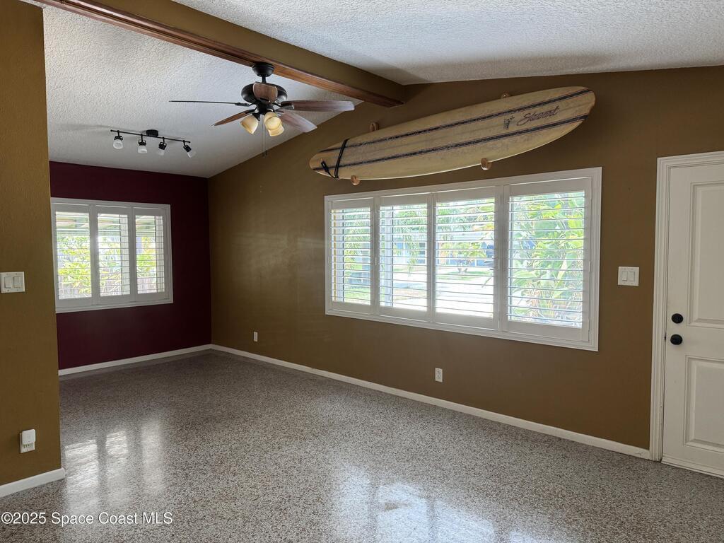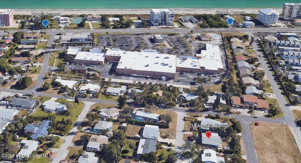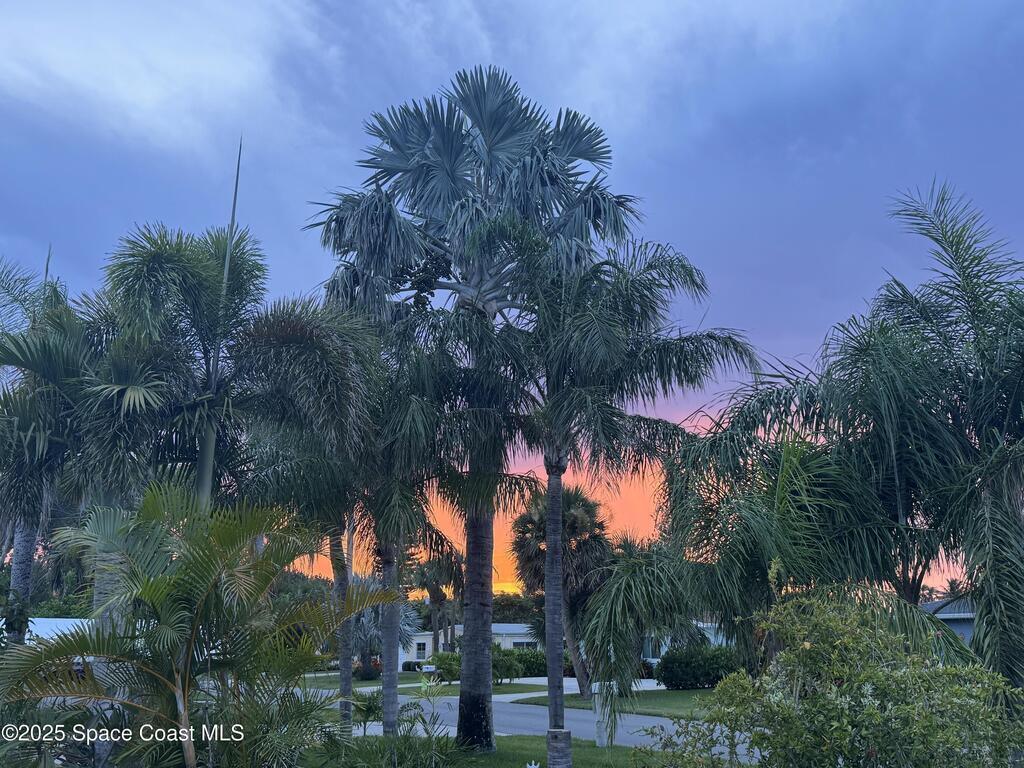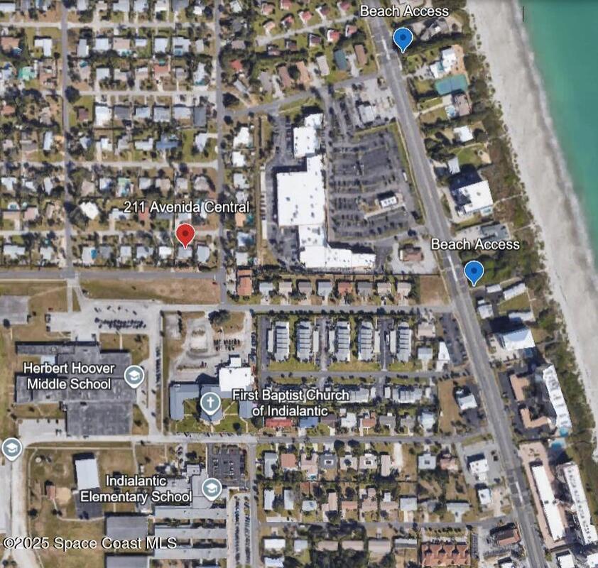 Beachside home in the highly desirable Avenidas neighborhood! Located near 2 local beach accesses, this mid-century modern gem is only a short walk to the beach! Property has dual frontage with Hoover Jr. High and Indialantic Elementary directly behind the property. Located in unincorporated Brevard County (no city taxes!) and no HOA. Enjoy rocket launches and sunsets from your front porch. Concrete Block Construction, Exterior Doors to/from each Bedroom, Beautiful Terrazzo and Tile Floors, Fenced in Yard, Outdoor Shed with Laundry Space and a well-fed irrigation system keep the immaculately maintained yard looking great. Recent updates include: Primary Suite and Walk-in Closet, Bathrooms, Kitchen Appliances, Main House A/C (2021), Florida Room A/C (2024), Primary Suite A/C (2021), Hurricane impact-rated windows on the front of the home (2019), and Roof (2017), Sidewalk/Carport Pad Extension (2025).