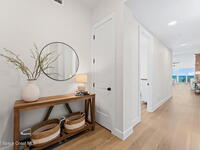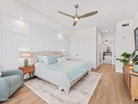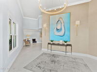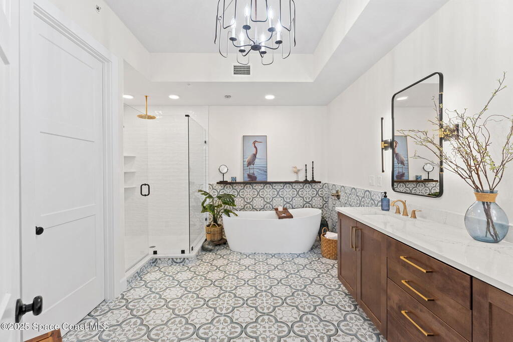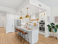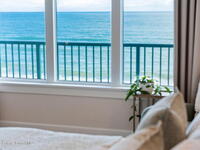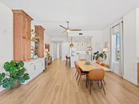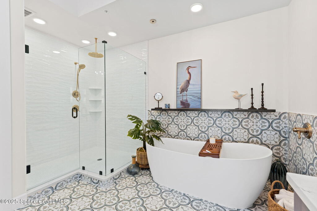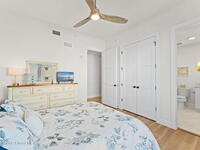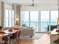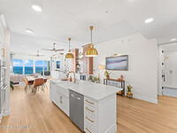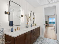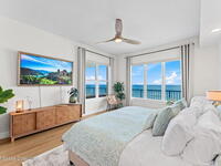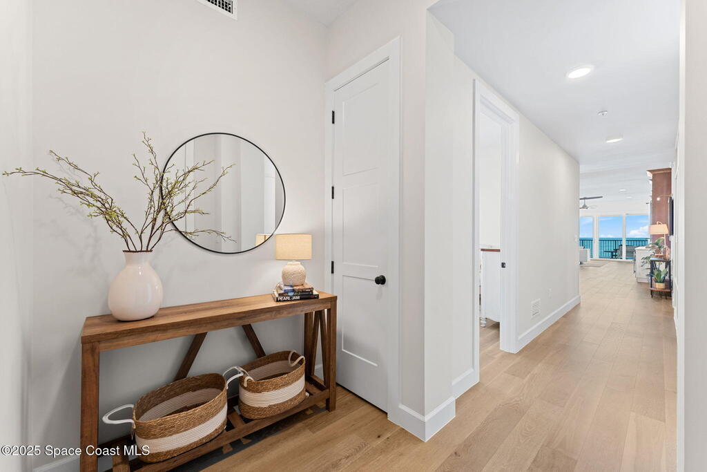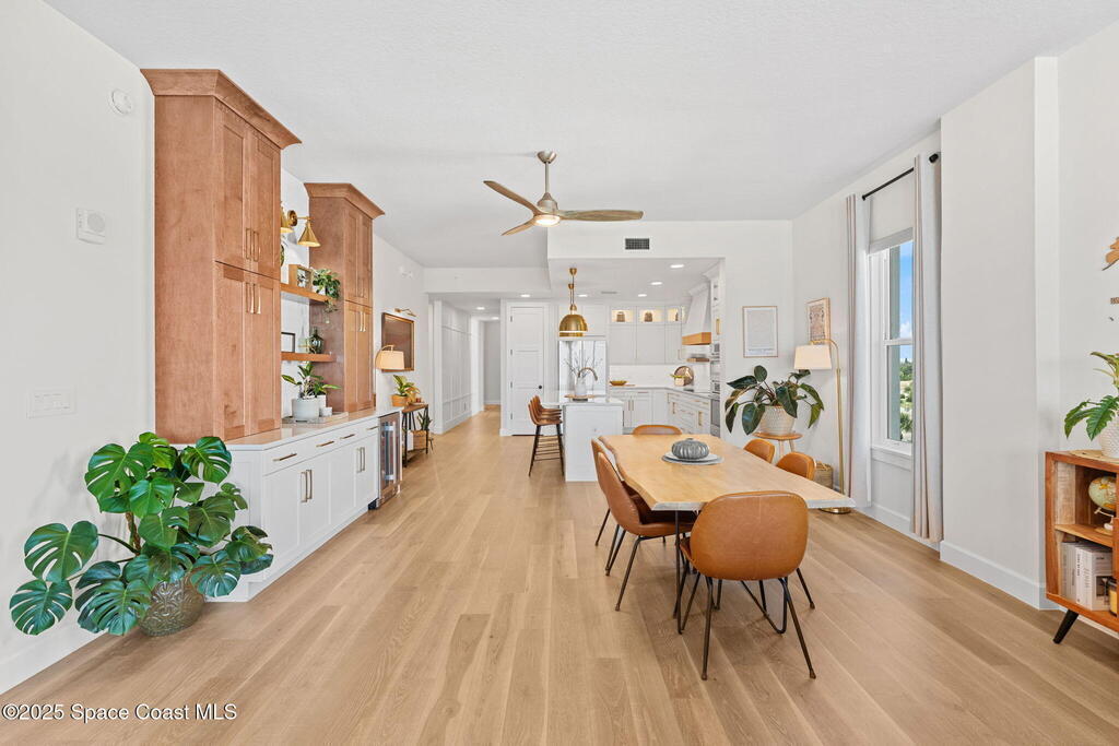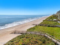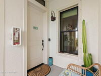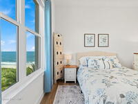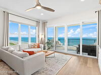 Built in 2022, this NE-corner condo delivers a modern beachfront lifestyle with unobstructed views of the ocean & rocket launches. Elevated 10' ceilings & floor-to-ceiling glass frame the horizon, while sliding doors open to a nearly 300 sq ft terrace that blurs the line between indoors & out. High-end finishes define every space, from custom cabinetry, quartz counters & stainless appliances in the kitchen to the custom bar/buffet at dining, built-in media center, window treatments & closet systems. Impact-rated glass, 1 3/4 solid core interior doors & concrete block walls provide peace of mind, complemented by fire sprinkler protection for safety. Community amenities elevate every day with a clubhouse, fitness facility, heated pool, hot tub & putting green. Blending sleek style with coastal ease, this residence is designed for both comfort & connection, offering an unmatched opportunity to embrace oceanfront living at its most effortless.
