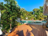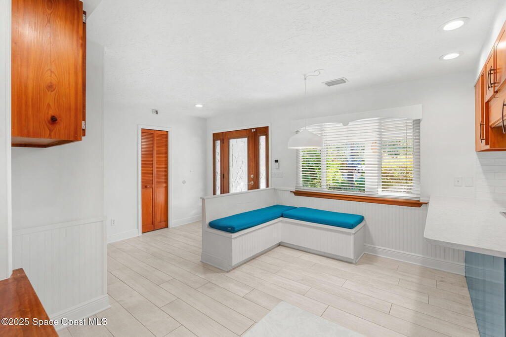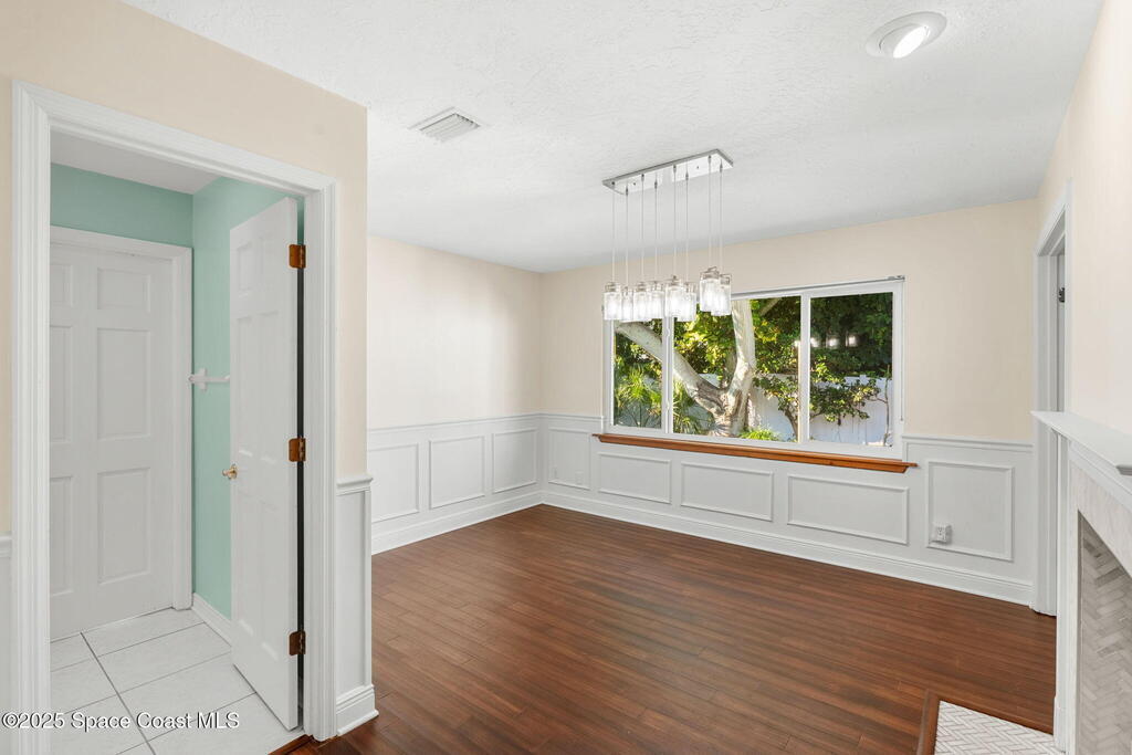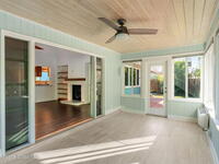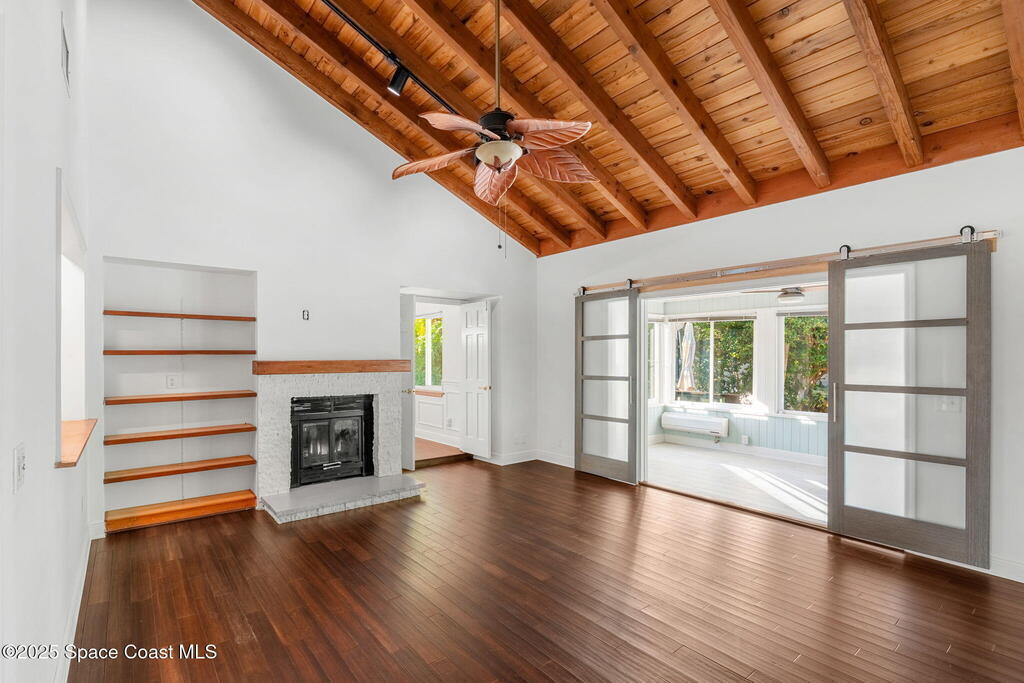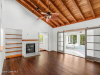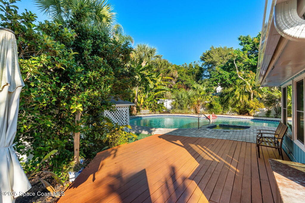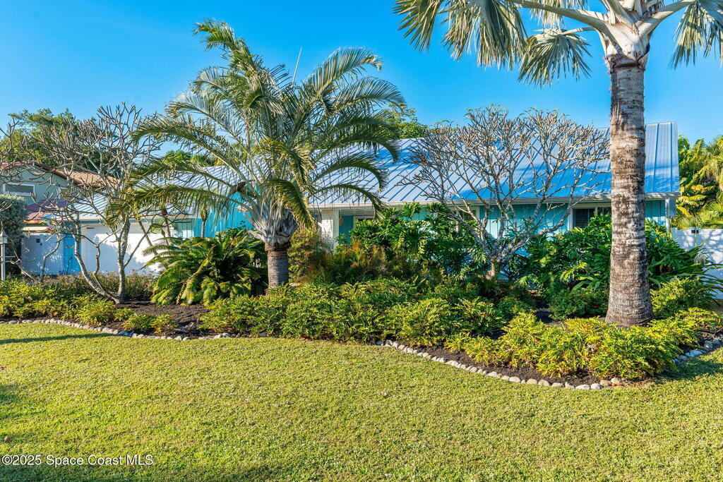 Nestled South of Fifth Ave and just one block from the beach, this blissful beachside cottage features a brand-new standing seam metal roof, impact windows, and a private backyard pool retreat surrounded by lush, tropical landscaping. Inside, charm fills every corner with a double-sided fireplace connecting the formal dining and living rooms, with wainscoting accents in the dining, and the living crowned by a vaulted tongue-and-groove ceiling and warm wood beams. The cozy kitchen offers wood cabinetry, quartz countertops, a double oven, and a built-in breakfast nook. Take your coffee in the Florida room, or relax in your fully fenced private paradise with a poolside deck perfect for unwinding. An indoor laundry room, half bath, and ample storage embody life's simple luxuries and everyday convenience, while the generous, oversized garage is ideal for storing surfboards, beach gear, a golf cart and more. Minutes to dining, shopping, the beach and Orlando Park for easy coastal living.