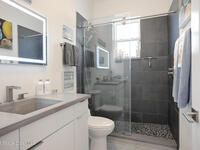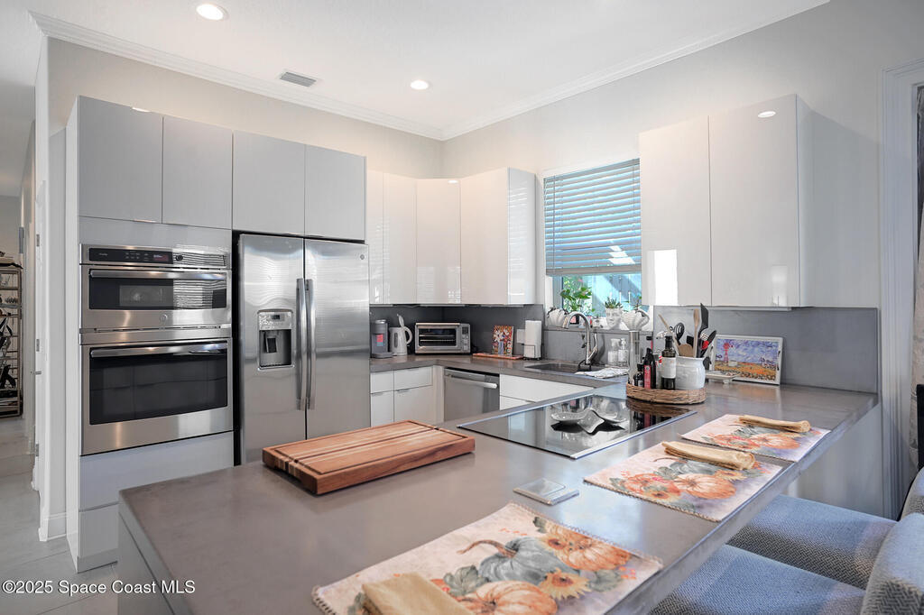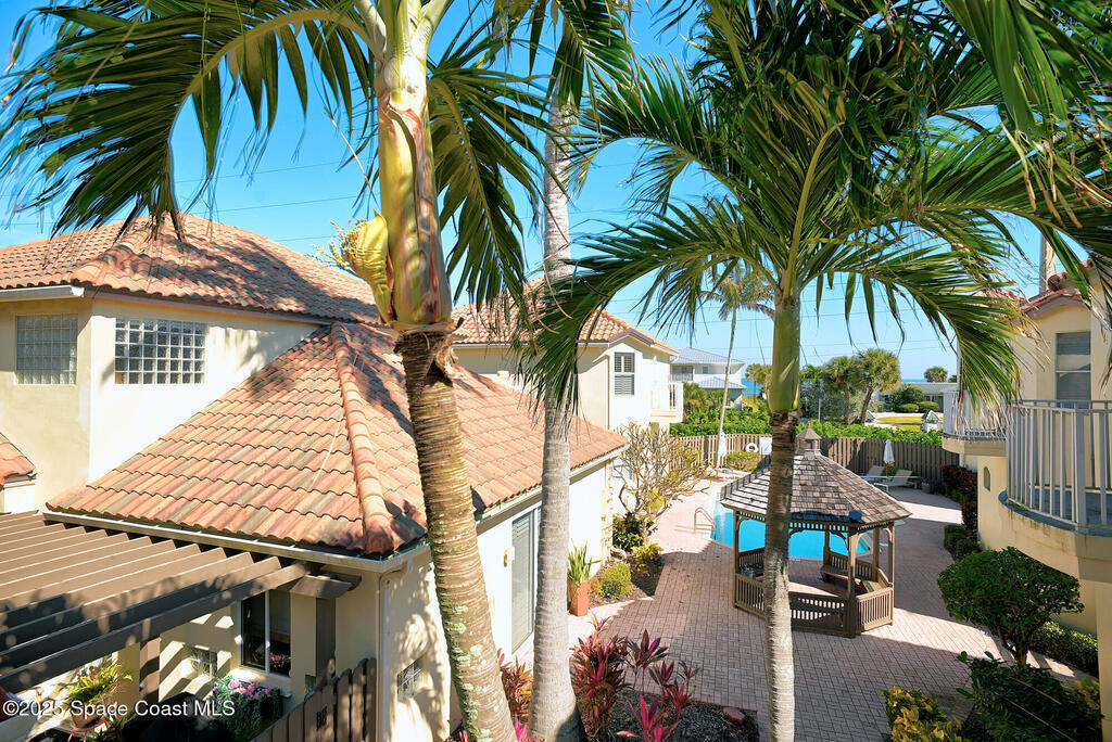 Unique Modern Home is located so close to the ocean you can hear the waves! Immaculate home has been meticulously maintained and is light and bright inside. Ceramic Tile Roof, 2022 A/C, 2019 Impact Windows, 2017 Impact Garage Door. Executive kitchen with polished concrete counters and shiny S/S appliances is perfect layout for entertaining family and friends! 1st floor guest rooms, with one opened flex-space is perfect for home office, workout room etc. The second-floor primary bedroom is the owner's sanctuary! Spa-sized bathroom with beautiful finishes, private ocean and pool view balcony, and Gigantic walk-in closet will make it difficult to leave this oasis. Large two car garage. Pavered driveway. Large porch for relaxing with pergola. Super quiet community with only 7 homes. Hurry this won't last long in this location and condition!