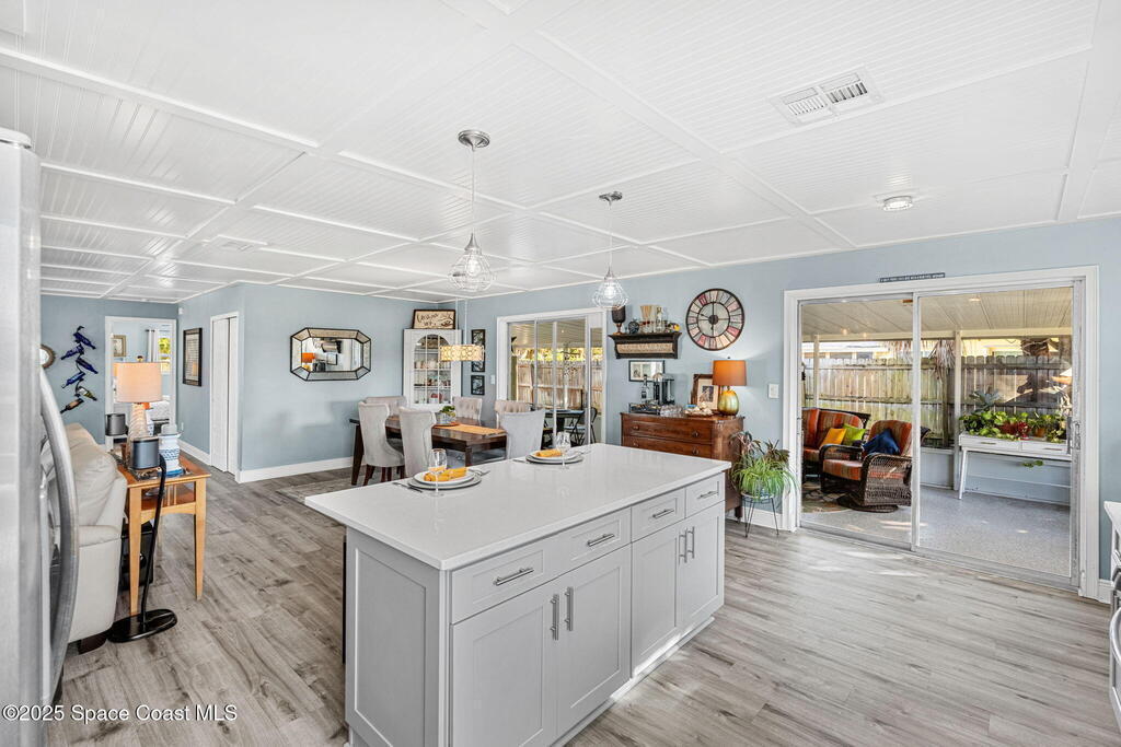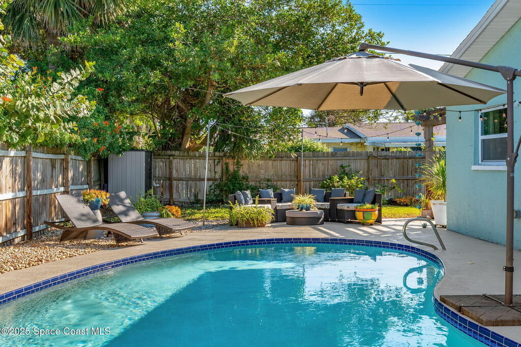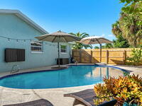Just blocks from the beach, this coastal retreat pairs big-ticket upgrades with effortless style, offering new luxury vinyl plank flooring (2023), a private pool with a freshly painted deck (2023), & an open floor plan anchored by a kitchen finished with quartz counters & a breezy breakfast bar. Everyday living flows easily into the reimagined 2025 screen porch with new floors, walls, & screens, highlighted by a newly epoxied porch floor, while exterior improvements--including a stained driveway & walkway (2025), new front fence & gate (2025), & a garage pull-down screen (2020)--boost curb appeal & convenience. Major systems bring peace of mind with a 2020 roof & HVAC plus a 2022 water heater, creating the perfect low-maintenance beachside haven.