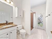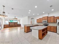 Discover coastal luxury in this 2002 built 5-bedroom, 3.5 bath sanctuary, nestled within an exclusive, secured gated community just blocks from the sandy shore. This home features an expansive living/dining spaces adorned with dramatic soaring ceilings and custom millwork that showcases superior craftsmanship. The heart of the home is the chef's kitchen, boasting oversized island, breakfast bar, premium appliances, quartz countertops, a generous pantry and casual dining area overlooking the private backyard. Seamlessly flowing into the great room, perfect for entertaining. The main-level primary suite is a private retreat, offering a spa-like bath and 2 walk-in closets. 2 additional spacious bedrooms and a private guest suite also on the main level. Upstairs, a versatile bonus room with a half bath, ideal for a media lounge, playroom, home office or 5th bedroom. Step outside to your personal oasis: a resort-style backyard featuring a sparkling pool, a relaxing hot tub, a covered patio
