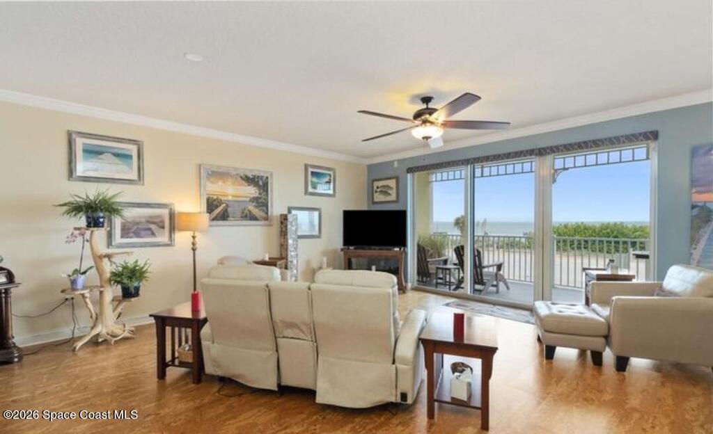 Wake up to stunning oceanfront sunrises in this luxurious 3-bedroom, 2-bath condo with sweeping views and an open-concept layout. Features include elegant cork flooring, a modern fireplace, gourmet kitchen, and an oversized balcony perfect for relaxing or entertaining. Thoughtful upgrades include automated blinds and hurricane-impact windows and doors. As well as updated hot water heater, roof, A/C, stove range, and refrigerator.Enjoy direct beach access and walk or bike to nearby shops and restaurants. Resort-style amenities include a pool and spa, clubhouse, fitness center, private storage, car wash, and secured entry. HOA is well-funded with all inspections and reserves in place--offering true peace of mind. Coastal living at its finest.