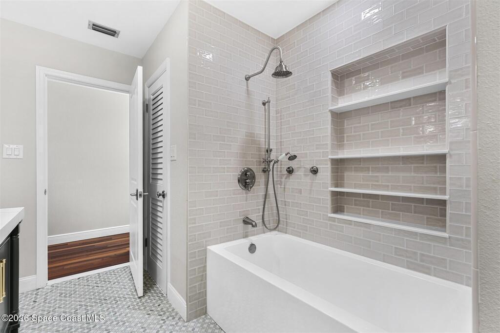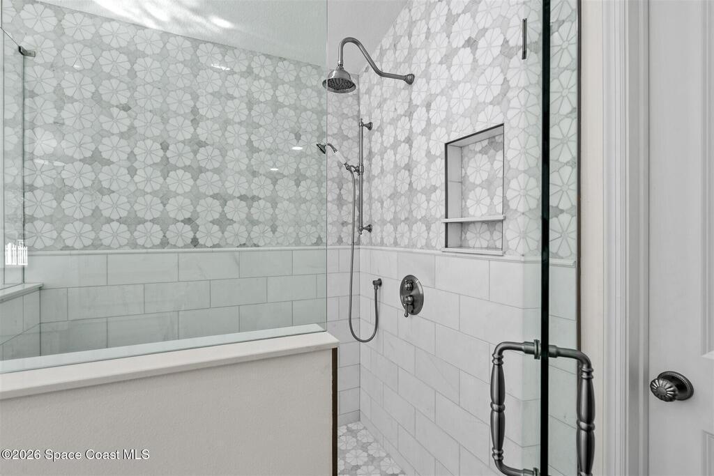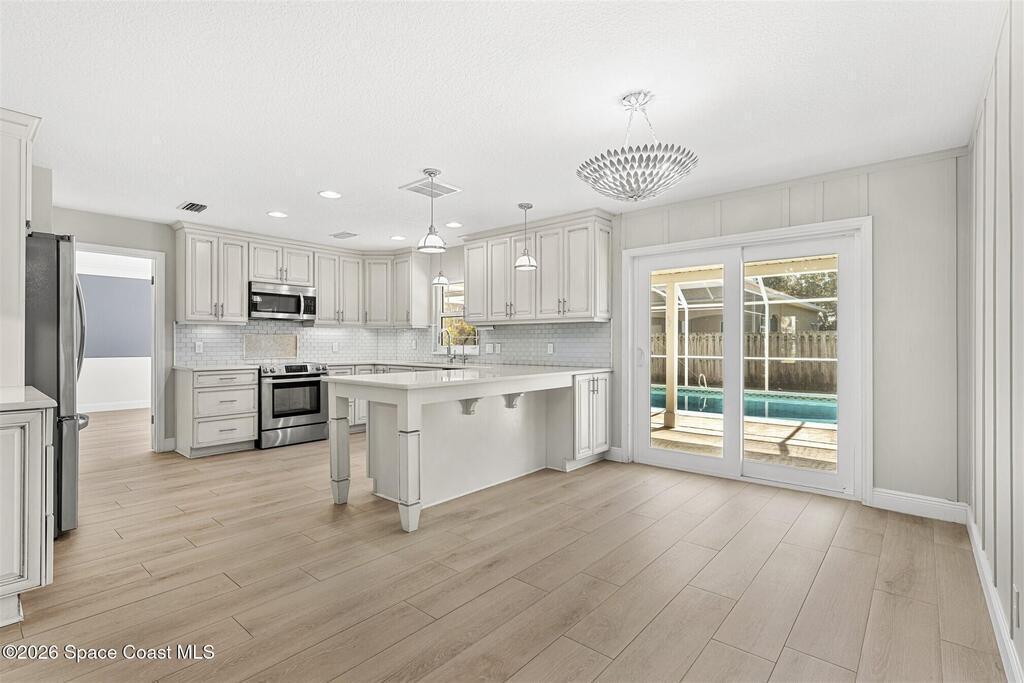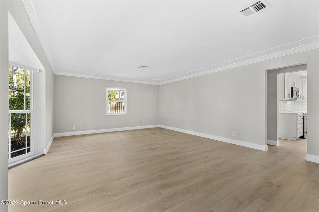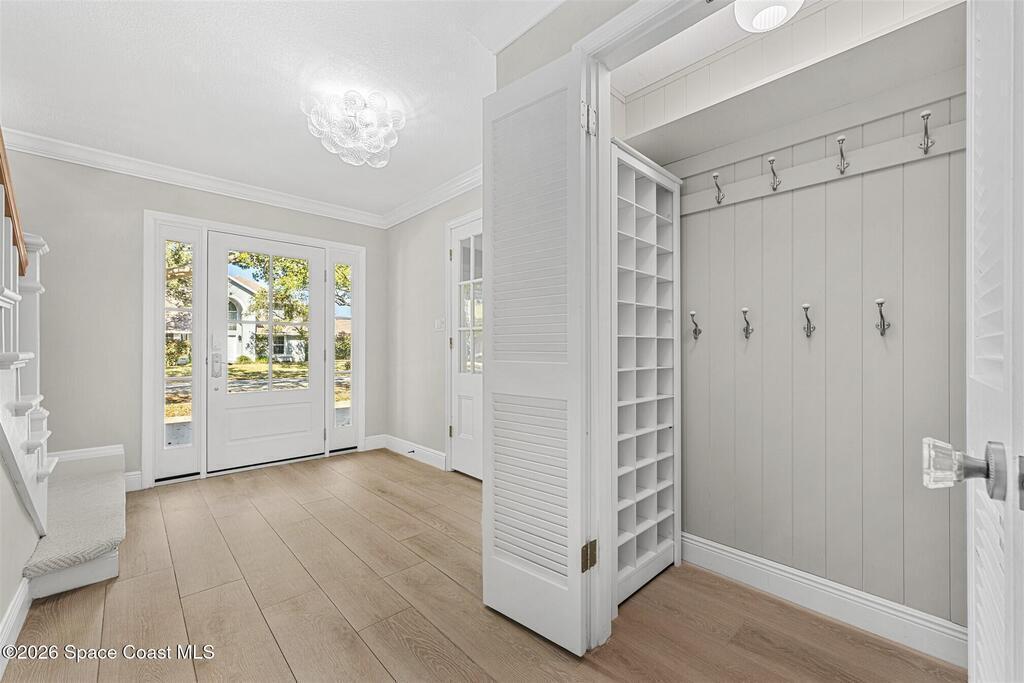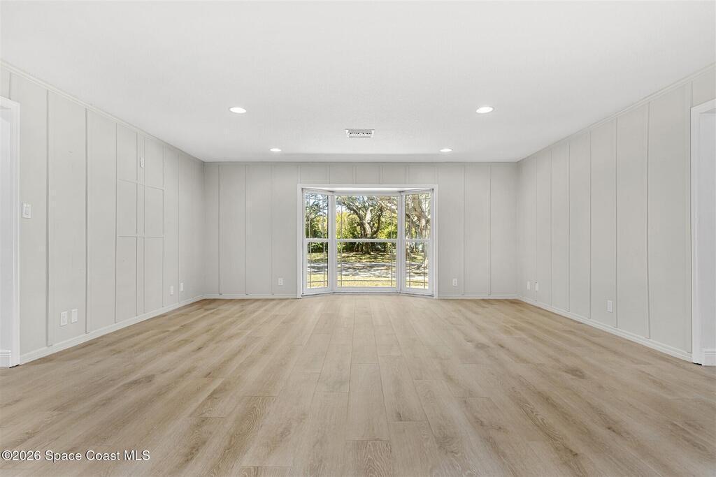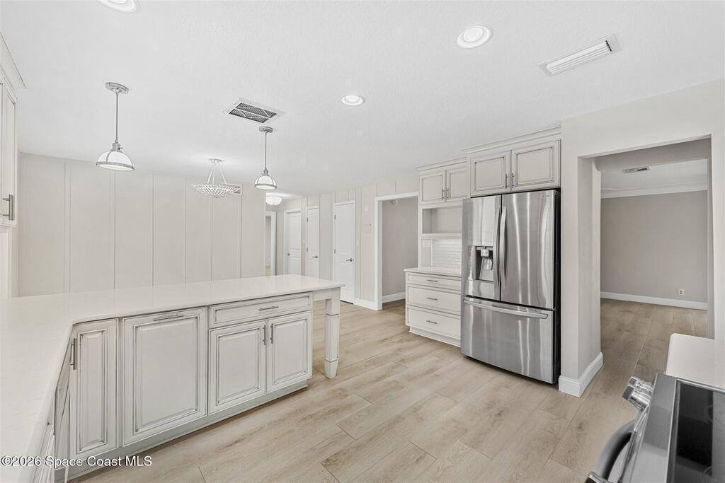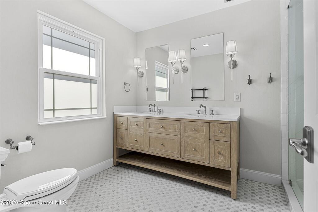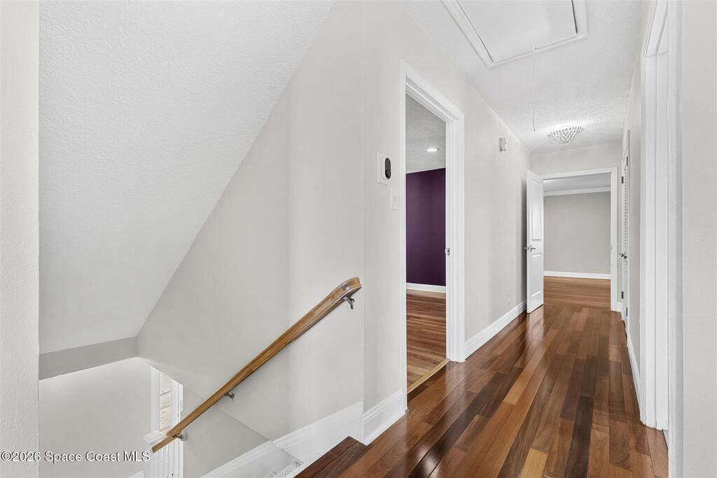 Remodeled in 2025 with impact windows, new 1st floor owner's suite, roof new in 2020, acs 2021 and 2025! Enjoy crisp river breezes in Indialantic in this gorgeous traditional concrete block house featuring 4 beds and 4 baths (2 owner suites) on a large corner lot. Stately oaks grace the grounds and a circular drive allows for guest parking. Neutral plank tile throughout the first floor reflects the feeling of sand beneath your feet. The charming contemporary kitchen includes a breakfast bar, ample cabinetry, a stylish tile backsplash, and stainless steel appliances. Nearby, a spacious living and dining room offer the perfect space for entertaining, and the huge family room features a cozy fireplace. A dedicated office makes the perfect area for a WFH setup, home gym, or studio. The stunning new owners' suite on the first floor offers a spa-like bathroom with a soaking tub, frameless shower, and large walk-in closet. Step outside to find a huge, fenced backyard where you can ''SEE MORE