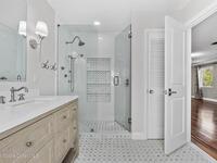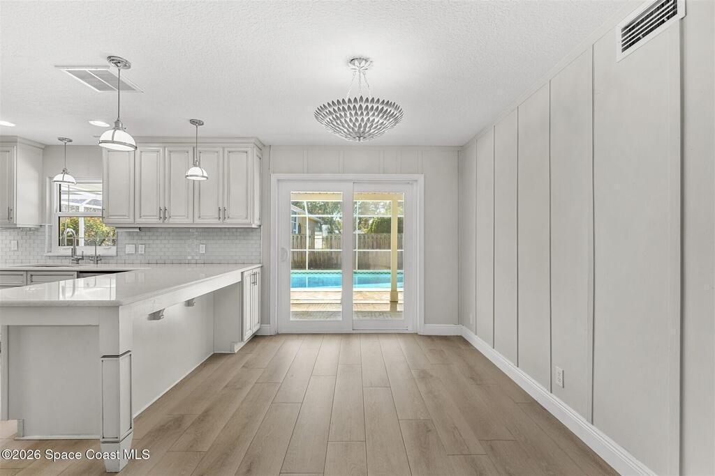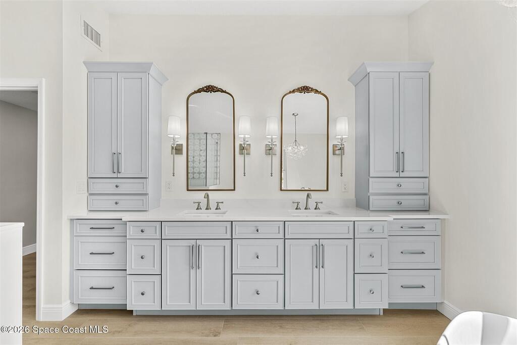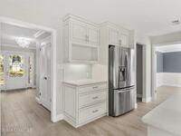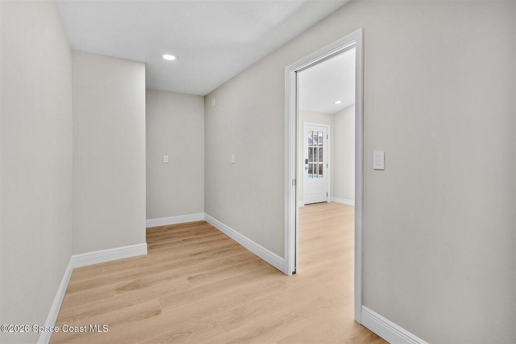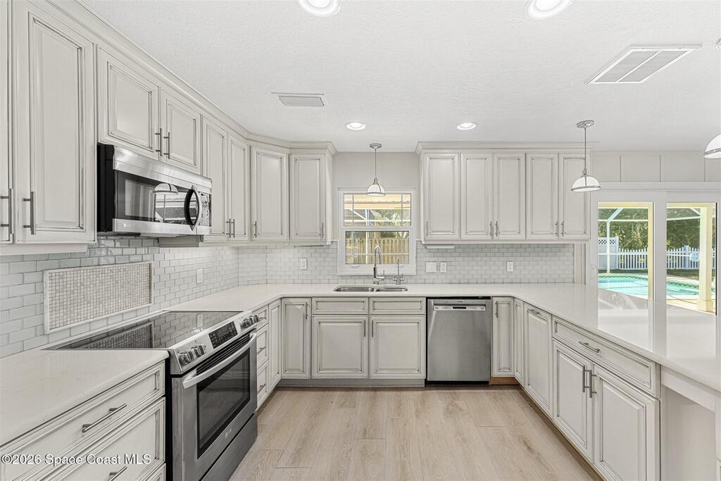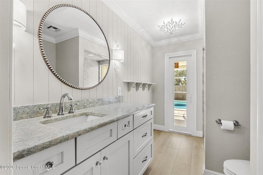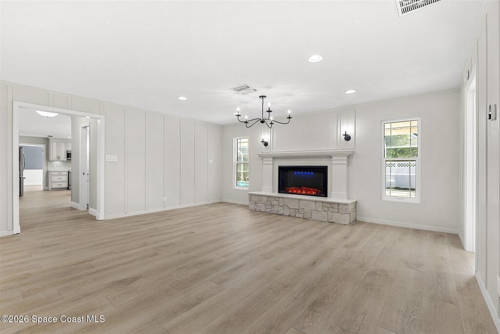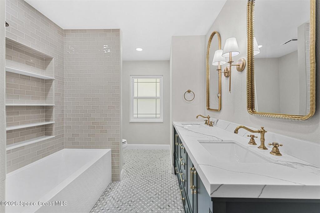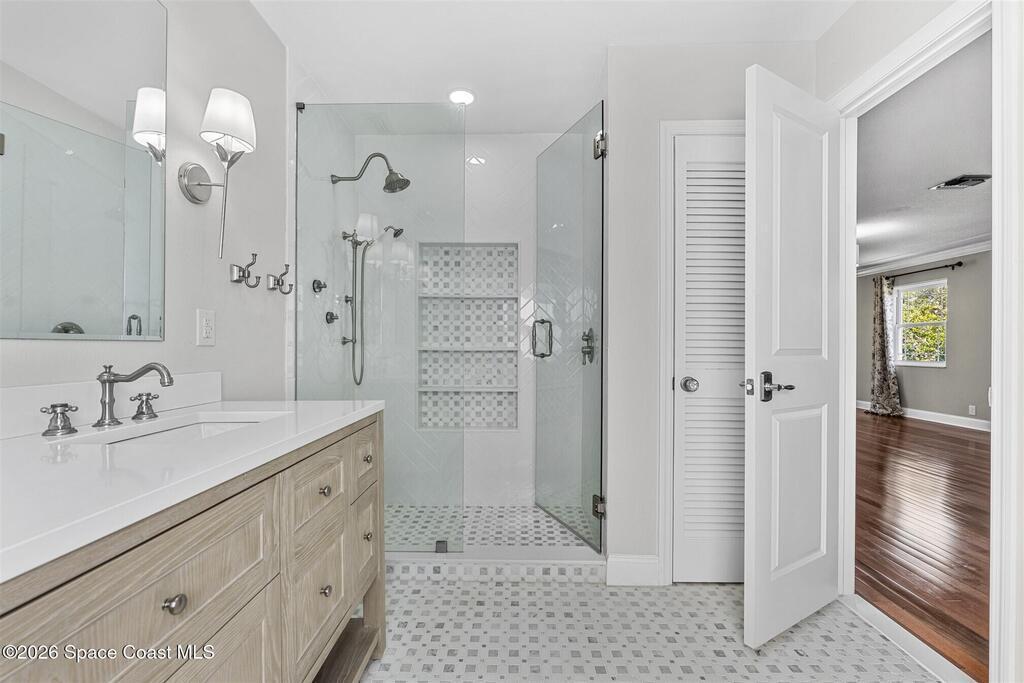 Remodeled in 2025 with impact windows, new 1st floor owner's suite, roof new in 2020, acs 2021 and 2025! Enjoy crisp river breezes in Indialantic in this gorgeous traditional concrete block house featuring 4 beds and 4 baths (2 owner suites) on a large corner lot. Stately oaks grace the grounds and a circular drive allows for guest parking. Neutral plank tile throughout the first floor reflects the feeling of sand beneath your feet. The charming contemporary kitchen includes a breakfast bar, ample cabinetry, a stylish tile backsplash, and stainless steel appliances. Nearby, a spacious living and dining room offer the perfect space for entertaining, and the huge family room features a cozy fireplace. A dedicated office makes the perfect area for a WFH setup, home gym, or studio. The stunning new owners' suite on the first floor offers a spa-like bathroom with a soaking tub, frameless shower, and large walk-in closet. Step outside to find a huge, fenced backyard where you can ''SEE MORE