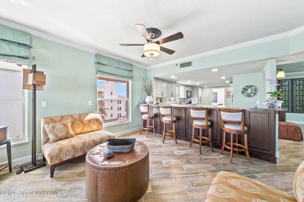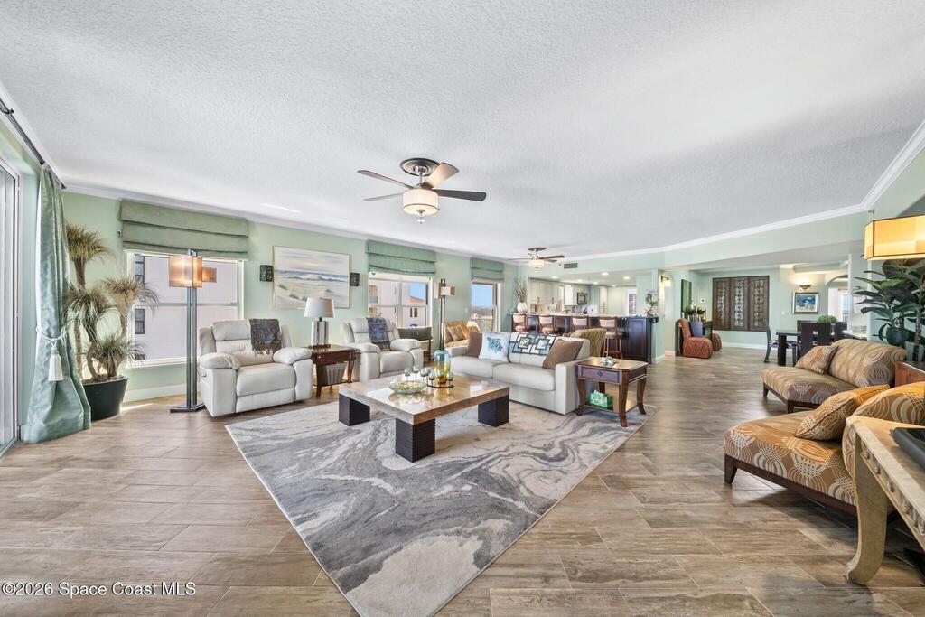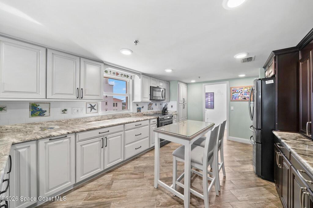 SE- corner unit on the 5th floor of the beautiful Barringer Condominium with stunning, direct ocean views! This spacious, updated residence offers over 2, 600 sq. ft. of coastal living with angled wood-look tile throughout. The open kitchen features custom cabinetry, designer backsplash, and upgraded stainless steel appliances, including a double-oven range. Additional upgrades include an EcoSmart tankless water heater & water filter system. The primary suite enjoys breathtaking water views, two walk-in closets with professional organizers & a spa-like bath with soaking tub, custom cabinetry & large walk-in shower. Electric hurricane shutters, two garage parking spaces, and private storage are included. The exclusive, owner-occupied Barringer community offers a heated oceanfront pool, private beach access, secured lobby entry, and enclosed garage parking. Centrally located between the causeways!