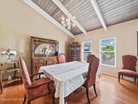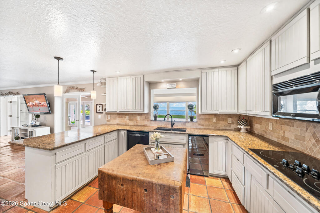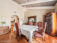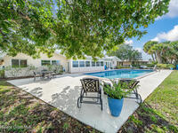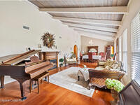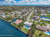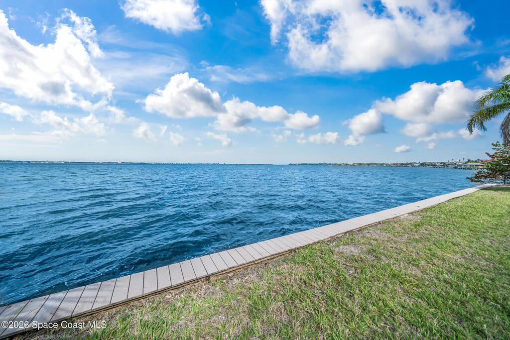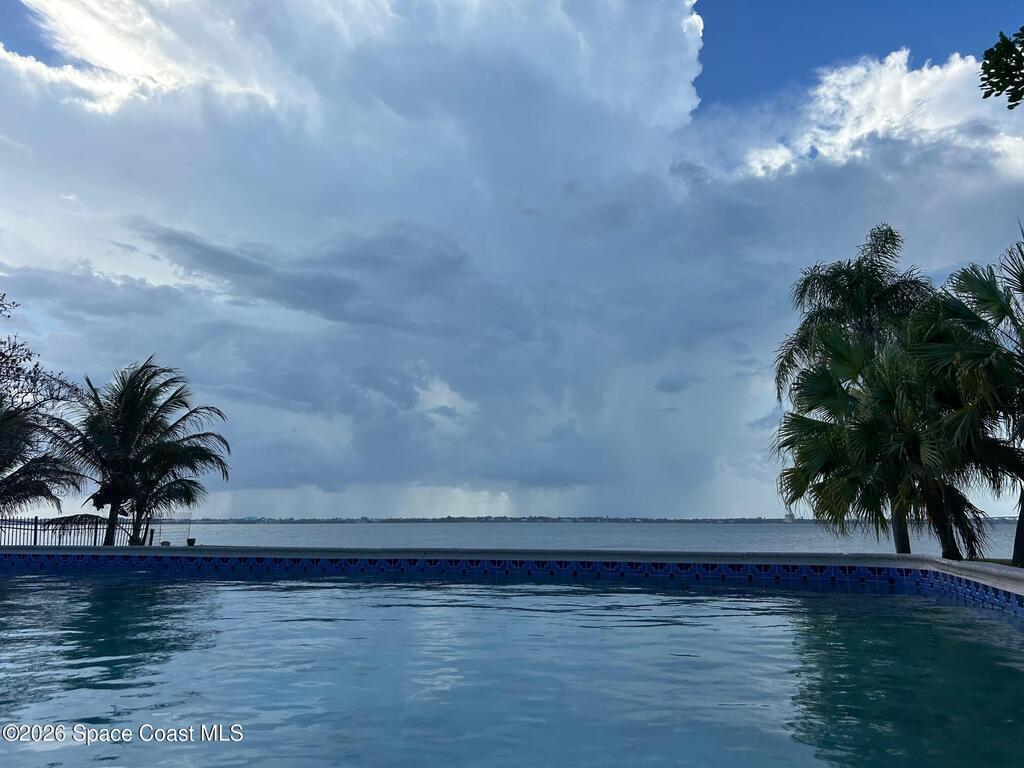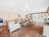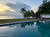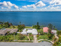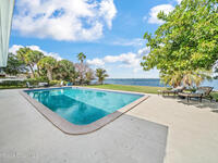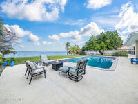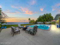 Enjoy direct, unobstructed riverfront living in Indialantic on a rare .46-acre lot with spectacular north, south, and west views. Ideally located between the Melbourne and Eau Gallie Causeways, this property offers breathtaking sunsets and panoramic water views. The home features a split floor plan, vaulted wood-beam ceilings in the living room, and an elegant marble-style entry with a wood barn door separating the bedroom wing. The primary suite and guest bedroom open to a glass-enclosed porch with Spanish tile flooring leading to a large Olympic-style pool overlooking the river. Recent updates include hurricane impact windows and doors, tile reroof partial (2019), seawall (2016), water heater (2022), HVAC (2016), and a new pool pump. The kitchen features white shaker cabinetry, granite countertops, and an eat-in bar with views of the pool and river. Located just half a mile from the beach with easy access to dining, shopping, A-rated schools, golf, and Orlando attractions.