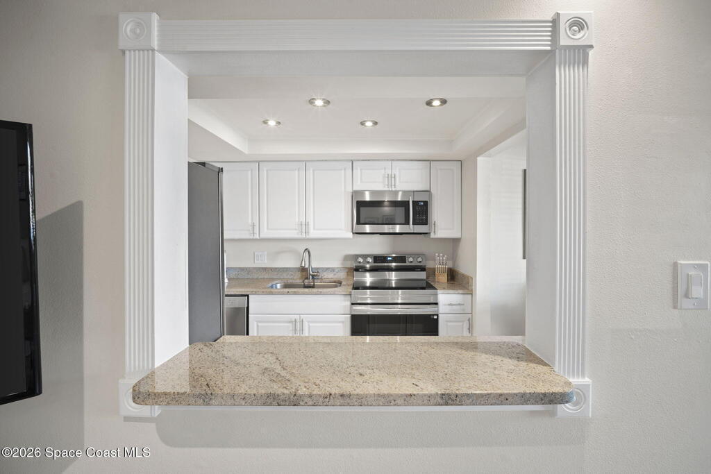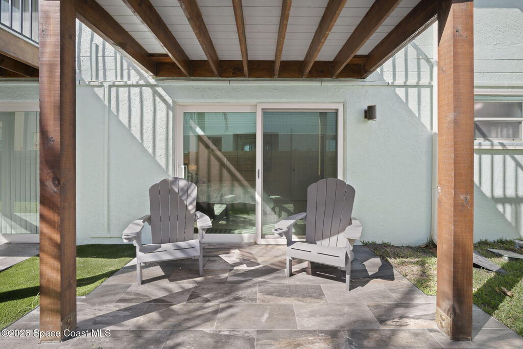 Lovely first-floor beachside unit just a short walk to the ocean. This beautifully updated condo features an upgraded kitchen with granite countertops and stainless steel appliances, an updated bathroom, and tile flooring throughout. The unit has been freshly painted and includes a new A/C, making it completely move-in ready. Enjoy your private covered patio, perfect for relaxing after a day at the beach. The unit comes fully furnished, and rent includes water, electric, cable, and internet for easy, worry-free living. Ideally located just one block from the beach and close to restaurants, shopping, and local attractions. A community washer and dryer area is conveniently located on the south side of the property.