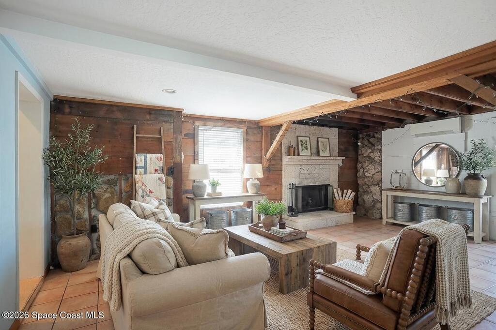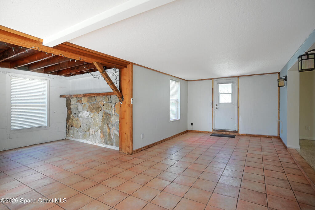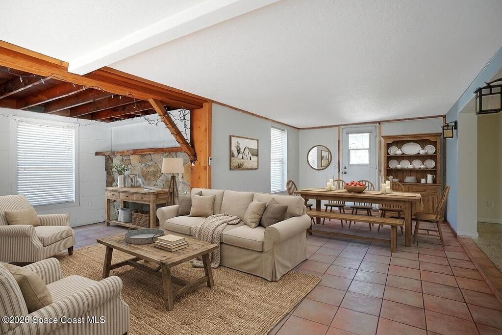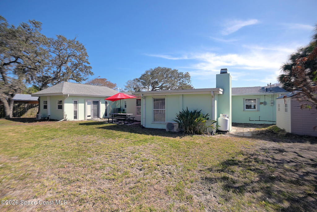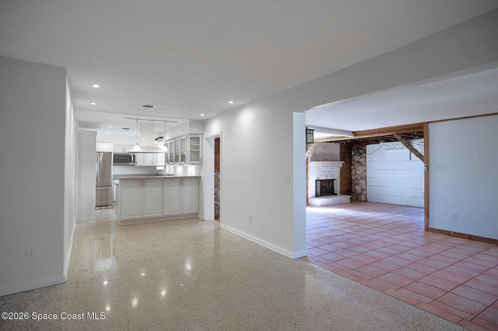 Welcome to this Spacious Indialantic Home by the Sea that features four-bedrooms and offers Terrazzo floors and fresh interior paint, creating a bright, move-in-ready living space. Updated kitchen features S/S appliances and pantry plus breakfast bar perfect for stools. One of the bedrooms is aver 300 sq ft and has private French door entrance and can function as a bedroom, office, or flex space. Enjoy a large enclosed, air-conditioned Florida room with a gas fireplace, plus an additional living room and dining area--perfect for entertaining. Solar HWH. Step outside to stroll to the beach, complete with stairs to the sand and a pavilion for lunch.A long driveway and a two-car garage provide convenient parking, while a welcoming front porch invites quiet mornings and sunset evenings. The front yard's large oak tree provides cooling shade. Side yard shed offers more storage. Hurricane shutters for added protection. Prime location near 192 with plenty of fine restaurants and shops.