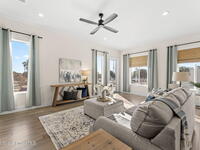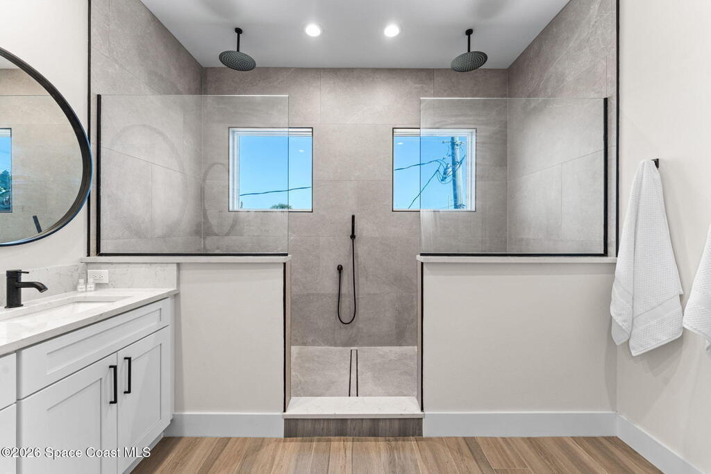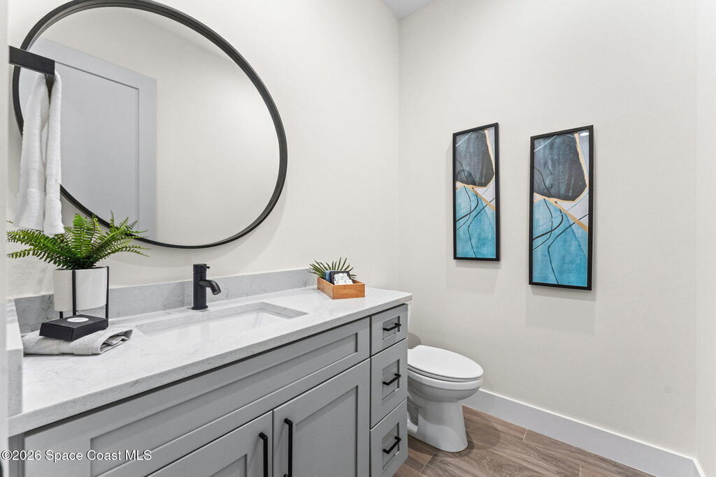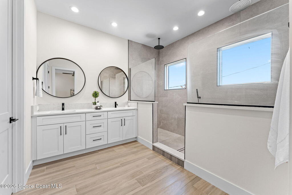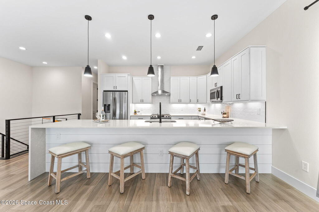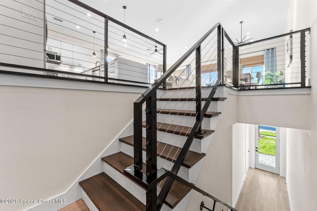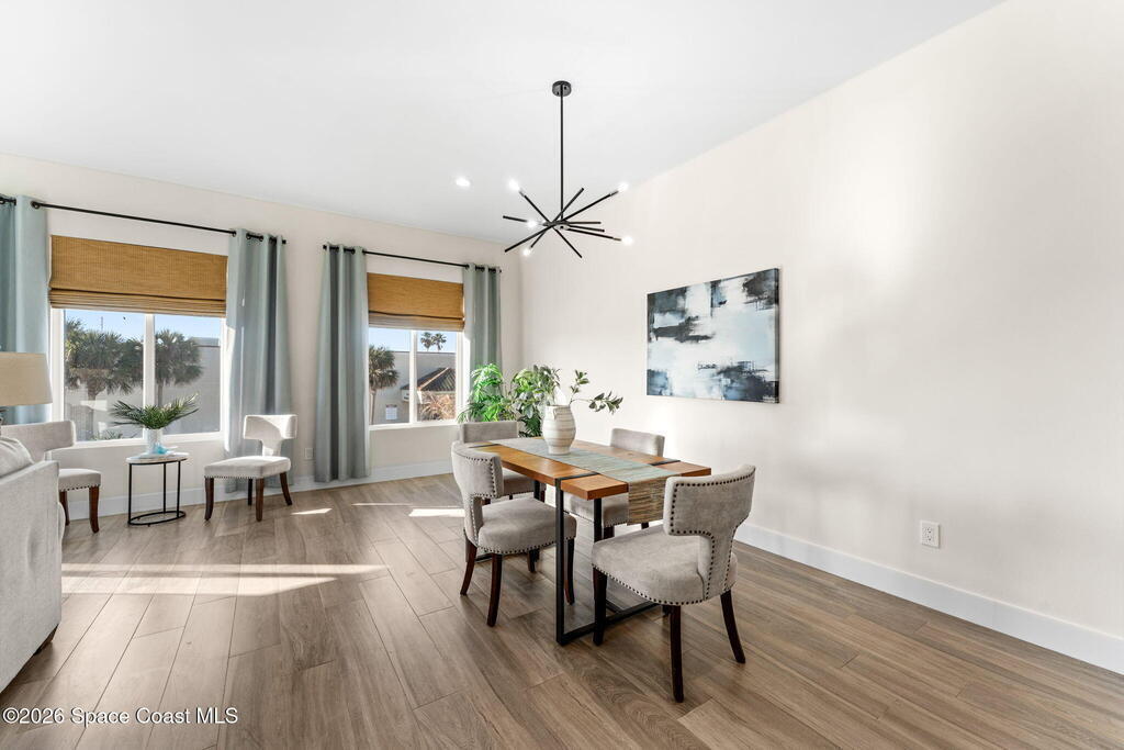 Wake up to ocean breezes and unwind with sunset views from your wraparound balcony in this beachside stunner just moments from the sand. This 3 bedroom, 2.5 bath home delivers an airy open floorplan with split bedrooms and sleek tile flowing throughout. The kitchen is designed to impress with crisp white quartz countertops, a bar refrigerator/wine cooler, and effortless flow for entertaining. Impact windows, a smart thermostat, and an upgraded smart garage bring peace of mind and modern convenience. Step outside to a private courtyard retreat featuring custom pavers and professionally installed artificial turf with bubble sprinklers for easy care and year-round beauty. Inside, custom luxury drapes and shades elevate every space. All just minutes from beach access, great dining, markets, and shopping. A rare blend of style, comfort, and location that truly stands out.