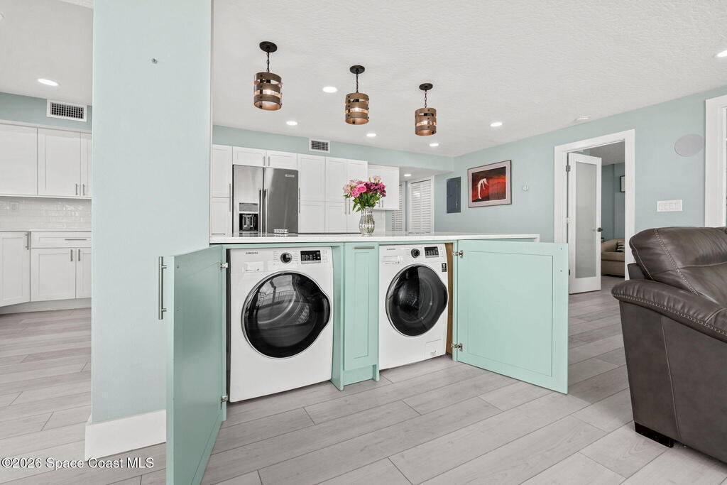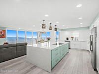 Rare 7th-floor southeast corner direct oceanfront residence offering elevated Atlantic views & miles of unobstructed coastline stretching south toward Sebastian Inlet. The desirable SE exposure fills the home w/ natural light & spectacular sunrises. Renovated from the studs out w/ updated drywall, electrical, plumbing, impact windows & sliders, this condo blends modern coastal design w/ peace of mind. Multiple sliders open to a true wraparound corner balcony capturing ocean breezes & sweeping shoreline views. Open living & dining areas flow into a stylish kitchen w/ stainless appliances, white cabinetry, quartz counters. Luxury vinyl plank flooring runs throughout. The Villager is a well-managed, pet-friendly oceanfront community offering private beach access, a large pool, secure lobby, garage parking, on-site manager & facilities, & 2 dogs allowed w/ no weight limit. Milestone & SIRS complete w/ over $1M reserves. Walk to Publix, restaurants, gyms & shops.