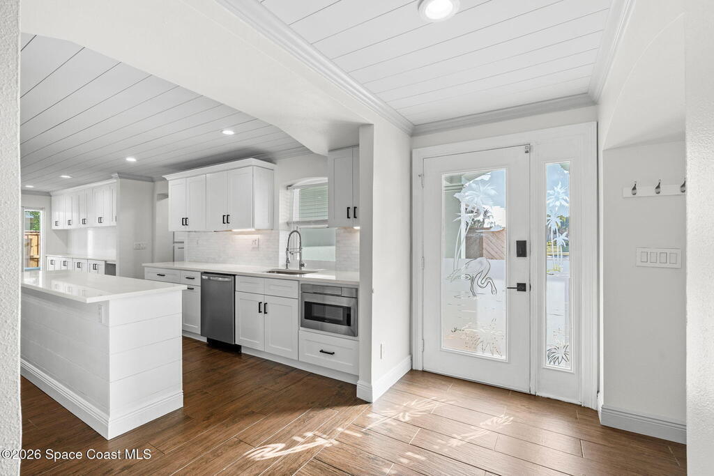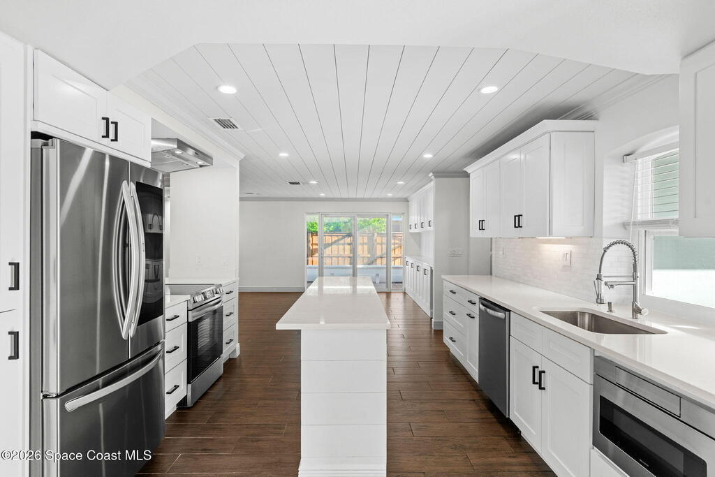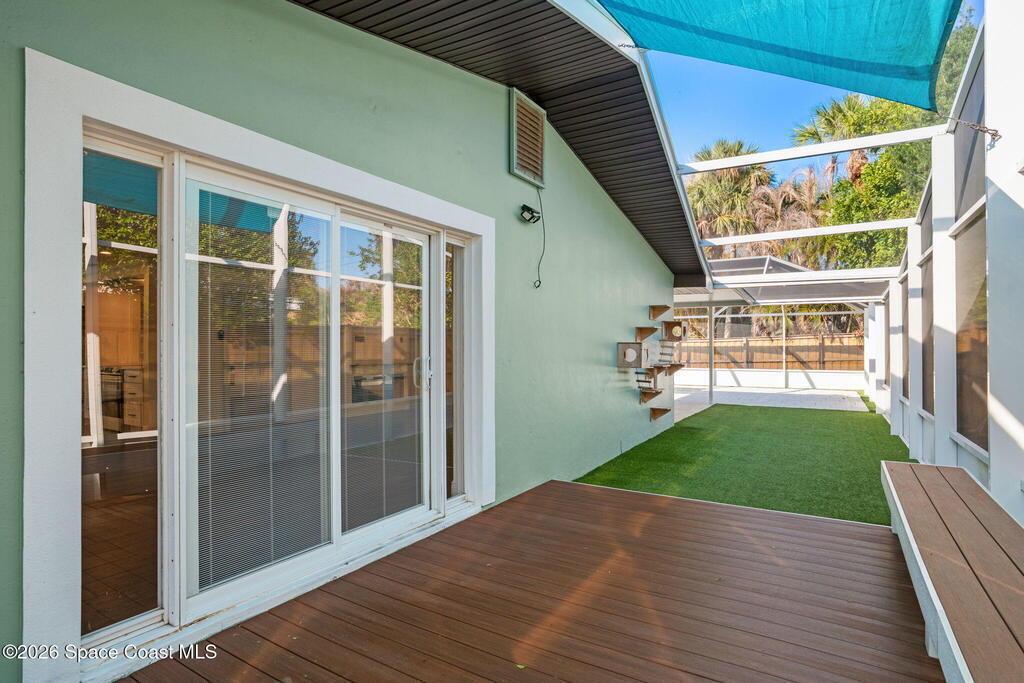 Step into coastal resort-style living in this beautifully updated 3-bedroom, 2-bath pool home in the highly sought-after SOFA (South of Fifth Ave) district of Indialantic. Just moments from the beach yet tucked into a quiet, established neighborhood, this home features wood-look tile flooring throughout the main living areas and a luxurious primary suite with spa-like bathroom and expansive walk-in closet. The inviting living and dining spaces flow easily for everyday comfort and hosting. Outside, a screened pool and lanai create a true outdoor oasis with plenty of room to lounge, dine, and enjoy the Florida lifestyle, while turfed areas in the fenced backyard add low-maintenance green space ideal for play or relaxing. A 2-car garage plus horseshoe driveway provide ample parking.