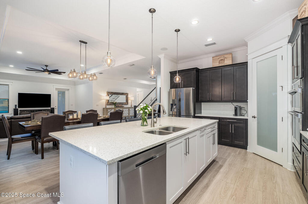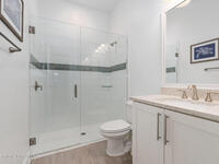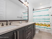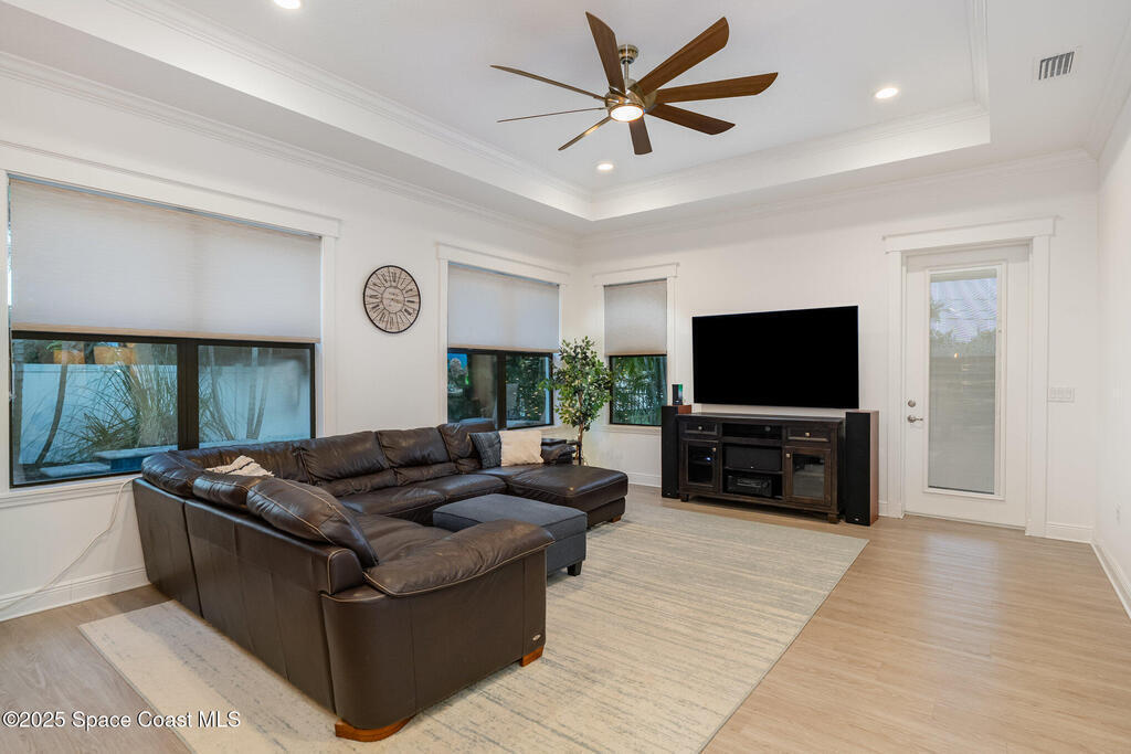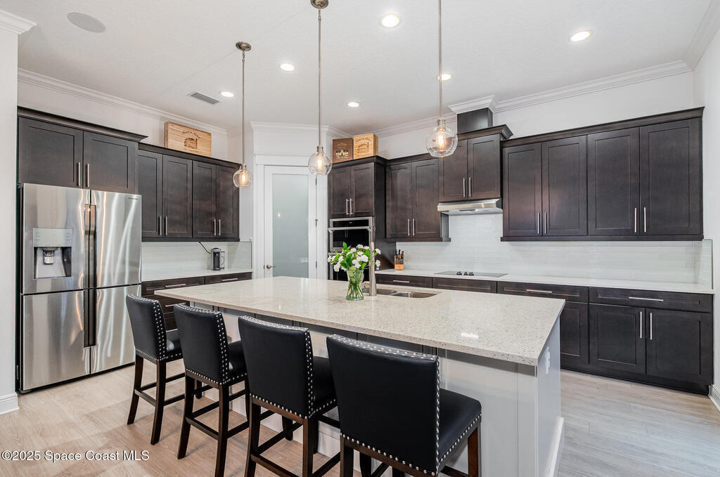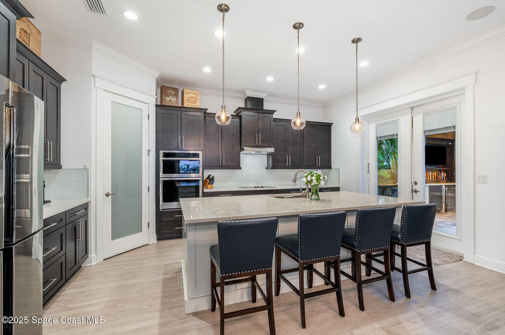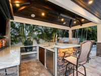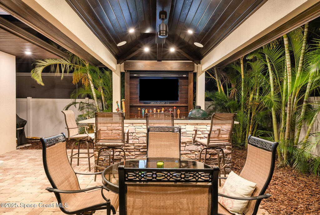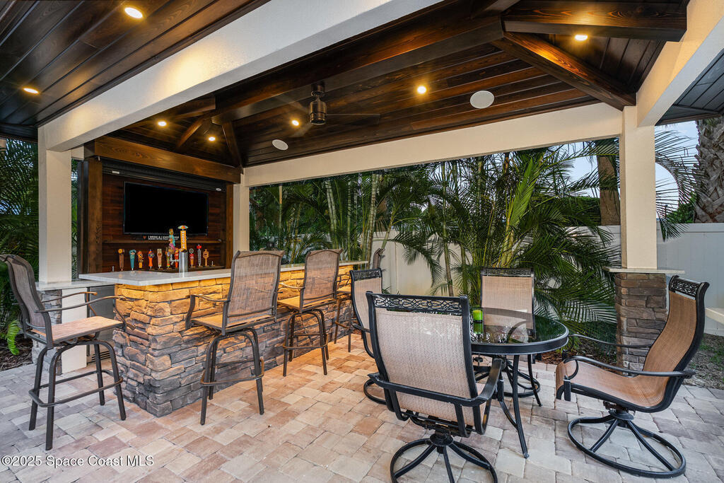 New Price! Reduced $70K! Live the luxury coastal vibe with the beach only 5 blocks away. Newly built pool home in an upscale beachside gated community of the Enclave! Curb appeal begins with the paver driveway, modern architecture, metal roof, & new CBS construction in 2019. The owners added a tropical poolside retreat with a new inground pool, waterfall and baja shelf. The pool is also a gas heated spa, but the star of the exterior is the high-end cabana complete with a custom TV cabinet with rolldown hurricane shutters, wood cypress ceiling, pocket lights, and surround sound. Entertain and grill on Green Egg grill at the custom bar with dual bar fridges and kegerator too! A gourmet kitchen with granite counters, island and breakfast bar plus stainless-steel appliances. The first floor has an open floor plan with the primary bedroom and en-suite bathroom plus the 2nd bedroom and bathroom on the main floor. Upstairs is a family room loft, balcony, 2 additional bedrooms and bathroom.