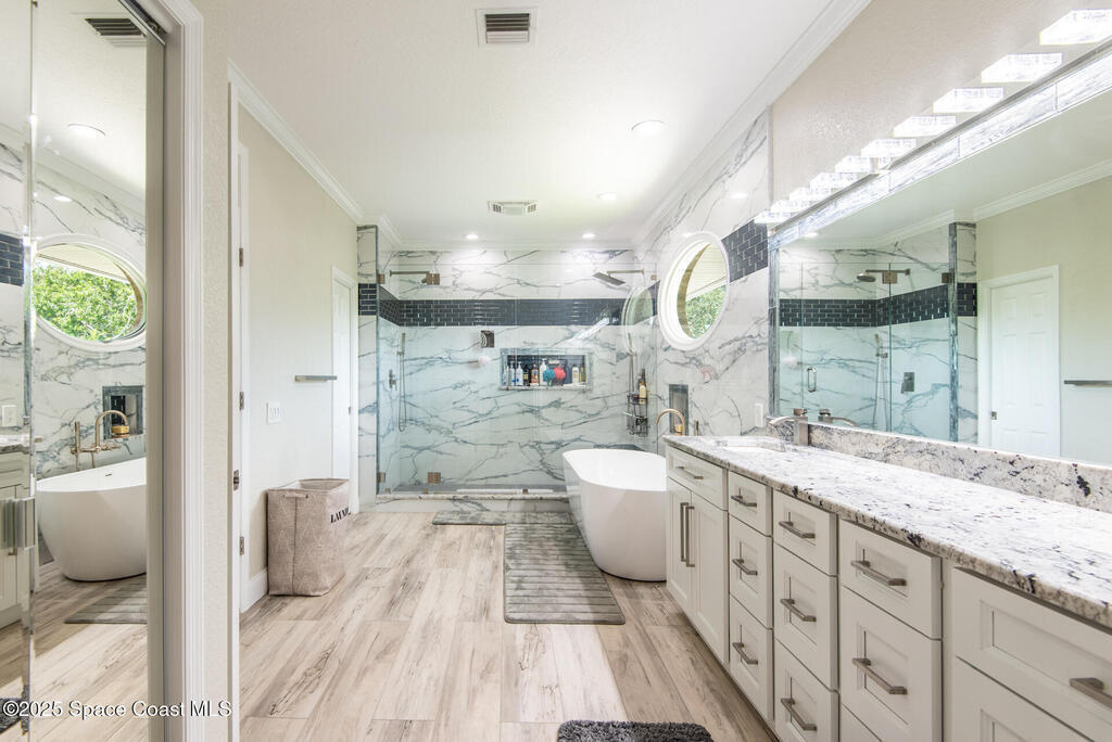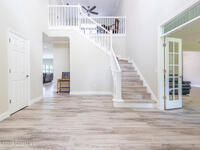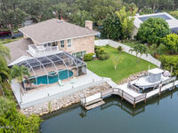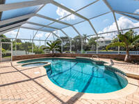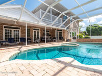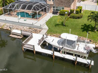 Exquisite canal front residence in the amazing Windward Cove subdivision in the Kiwi Racquet and Fitness Club neighborhood offers luxury living with four bedrooms, three bathrooms, and an impressive 3, 643 sq ft of meticulously crafted interiors. A boater's dream, the property boasts 97 feet of pristine water frontage, a private dock with a boat lift, brand new deck and direct access to navigable Banana River. The screened-in pool and spa outdoor provides splendid entertainment. Living room with gas fireplace overlooking the amazing spacious kitchen with island, granite counter tops and fully remodeled cabinets. All three bathrooms tastefully remodeled. Hurricane impact windows provides the perfect comfort in Florida living. New roof in 2021 and the whole house with high end luxury lifetime vinyl plank floor. This rare waterfront sanctuary seamlessly combines elegance, exclusivity, and the ultimate coastal lifestyle.