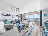 SPECTACULAR FULLY REMODELED OCEAN FRONT UNIT UNLIKE ANY OTHER UNITS IN THIS BUILDING. A MUST SEE. EVERYTHING HAS BEEN REPLACED FROM THE FLOOR TO THE CEILING. STAINLESS STEEL APPLIANCES, QUARTS COUNTER TOPS, FARM SINK, SOFT CLOSE CABINET DOORS AND DRAWERS, VINYL PLANK FLOORING, NEW SLIDERS WITH TURTLE TINT GLASS, ACCORDION AND ROLLDOWN SHUTTERS. BLACKOUT BLINDS, BARN DOORS, CUSTOM CLOSETS. BUILT-IN BAR WITH WINE FRIDGE AND MUCH MORE. WATCH THE ROCKET LAUNCHES FROM YOU OWN PRIVATE BALCONY. THIS IS A RARE UNIT THAT HAS TWO LARGE UNDERGROUND GARAGE SPACES. PLUS WE GOT A NEW ROOF AND ELEVATOR IN 2024. ONLY AN HOUR DRIVE TO THE ORLANDO Also for sale MLS # 1046635 INTERNATIONAL AIRPORT, DISNEY, UNIVERSAL STUDIOS AND MORE.