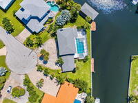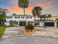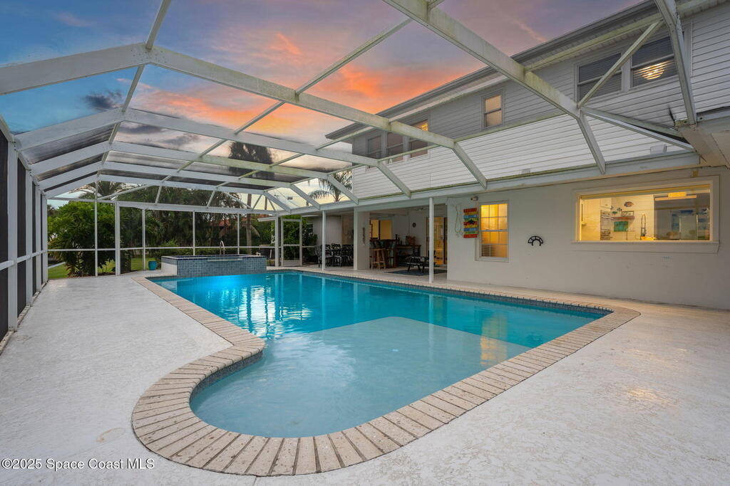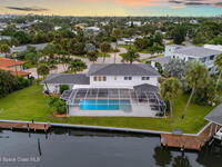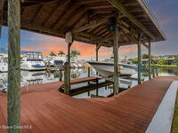 72-hr KOC. Life on the water takes center stage with 195' of canal frontage, 2 docks including a lift & deep-water access ready for boating. The outdoor spaces feel like a private resort w/a custom-shaped pool, hot tub, screened lanai, sun deck & full pool bath designed for endless gatherings by the water. Inside, a reimagined kitchen frames Indian River views w/ quartz countertops, Thermador appliances, a True fridge, an island w/ electric cooktop plumbed for gas stub in, wine bar & coffee station. Luxury vinyl & terrazzo floors flow through the living spaces, anchored by a wood burning fireplace. Upstairs, the primary suite captures wide water views w/ a granite dual sink vanity, dual shower heads & pocket door bath. A guest suite offers a remodeled en suite w/ tub & shower, while additional bedrooms provide flexibility, including one redesigned as a full custom closet. With a new pool heater, 3 mini splits & thoughtful upgrades, this property embodies the full waterfront lifestyle