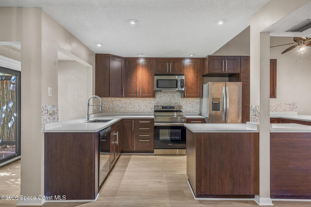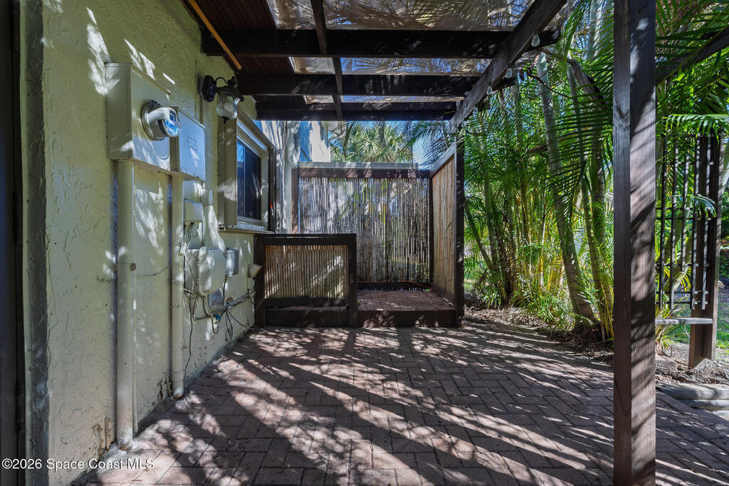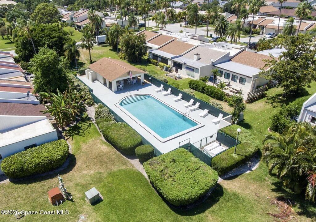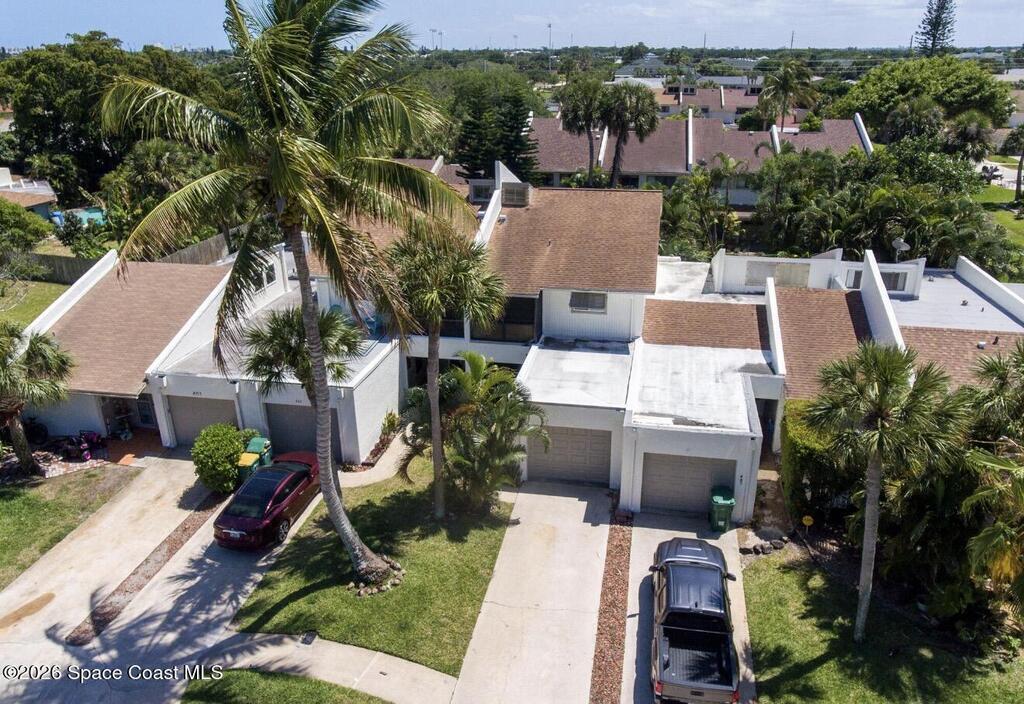Only unit available in the community! Nestled on a quiet beachside cul-de-sac, this beautifully updated townhouse offers the perfect blend of comfort, style, and coastal charm. Featuring an open floor plan with three spacious bedrooms, two and a half bathrooms, and nearly 1, 600 square feet of living space, the home showcases acid-stained, high-sheen concrete floors paired with new luxury vinyl throughout. The stunning kitchen is designed to impress with sleek quartz countertops and custom-built cabinetry. The fully remodeled primary bath creates a spa-like retreat, complete with a walk-in shower and a separate vintage clawfoot tub. Off the master bedroom is a screened patio and private rooftop living area--your own peaceful oasis. A second set of French doors opens to a lush, tropical backyard retreat to make your own peaceful oasis. The low monthly HOA includes lawn care, a community pool, and clubhouse. Located in an A-rated school district and just a short bike ride from the beach,