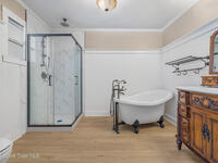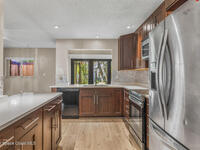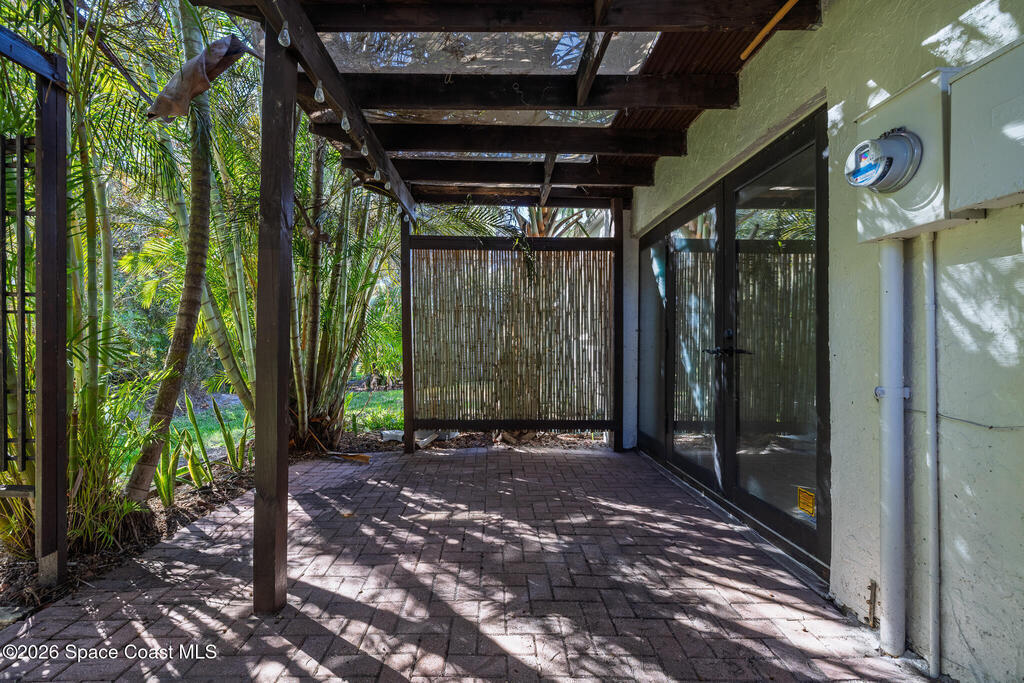 Nestled on a quiet beachside cul-de-sac, this beautifully updated townhouse offers the perfect blend of comfort, style, and coastal charm. Featuring an open floor plan with three spacious bedrooms, two and a half bathrooms, and nearly 1, 600 square feet of living space, the home showcases acid-stained, high-sheen concrete floors paired with new luxury vinyl throughout. The stunning kitchen is designed to impress with sleek quartz countertops and custom-built cabinetry. The fully remodeled primary bath creates a spa-like retreat, complete with a walk-in shower and a separate vintage clawfoot tub. Off the master bedroom is a screened patio and private rooftop living area--your own peaceful oasis. A second set of French doors opens to a lush, tropical backyard retreat to make your own peaceful oasis. The low monthly HOA includes lawn care, a community pool, and clubhouse. Located in an A-rated school district and just a short bike ride from the beach, this home delivers the