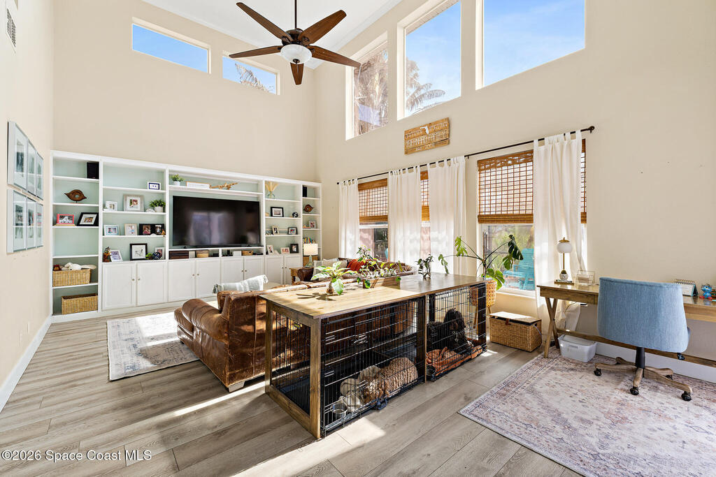 Located in the exclusive Harbor Lights subdivision, this refined 4-bedroom, 3-bath residence with a rare 3.5-car garage offers a thoughtful blend of luxury, efficiency, and privacy. The upgraded kitchen showcases GE Cafe smart appliances, a 36'' professional-grade range, and an oversized center island designed for elevated entertaining. A standout feature is the 20 kW CertainTeed solar roof tile system with 250+ integrated tiles, paired with a Sonnen backup battery and FPL net metering, delivering seamless power during storm outages and significant energy savings year-round. The outdoor retreat features paver walkways to the pool and patio, a new spa heater, and full 6' PVC privacy fencing. Mature tropical fruit trees enhance the landscape. Additional amenities include updated flooring throughout, a modernized laundry room, exceptional storage, and a permanent staircase to the attic above the garage, a rare and valuable upgrade. Don't miss this opportunity! Schedule your showing today!