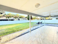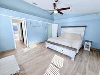 Tucked inside the highly sought-after neighborhood of Windward Cove, this renovated 4 bed, 2.5 bath home is just what you've been looking for. From the moment you walk in, you'll notice the wood-look tile, crown molding, and custom shiplap wall that bring a clean, coastal feel throughout.Designed with a split floor plan, the primary suite is privately situated on the west end, creating the perfect escape with spa-like vibes, a soaking tub, oversized walk-in shower, dual vanities, and custom closet built-ins.French doors lead to a large fenced backyard with pavers, a fire pit, and a mature mango tree, with plenty of room to add a pool. Roof is 2018 and full hurricane shutters offer added peace of mind.A dedicated laundry room with sink adds everyday convenience.Just minutes to the beach and walking distance to Kiwi Tennis & Pickleball Club, this is beachside living done right.