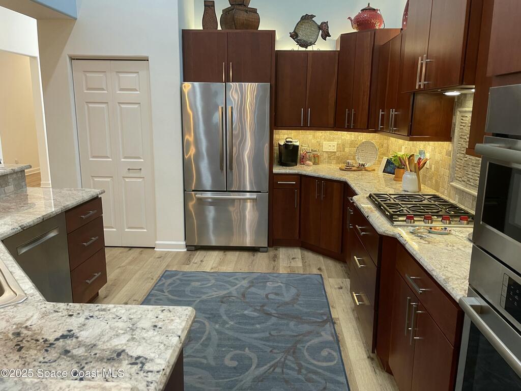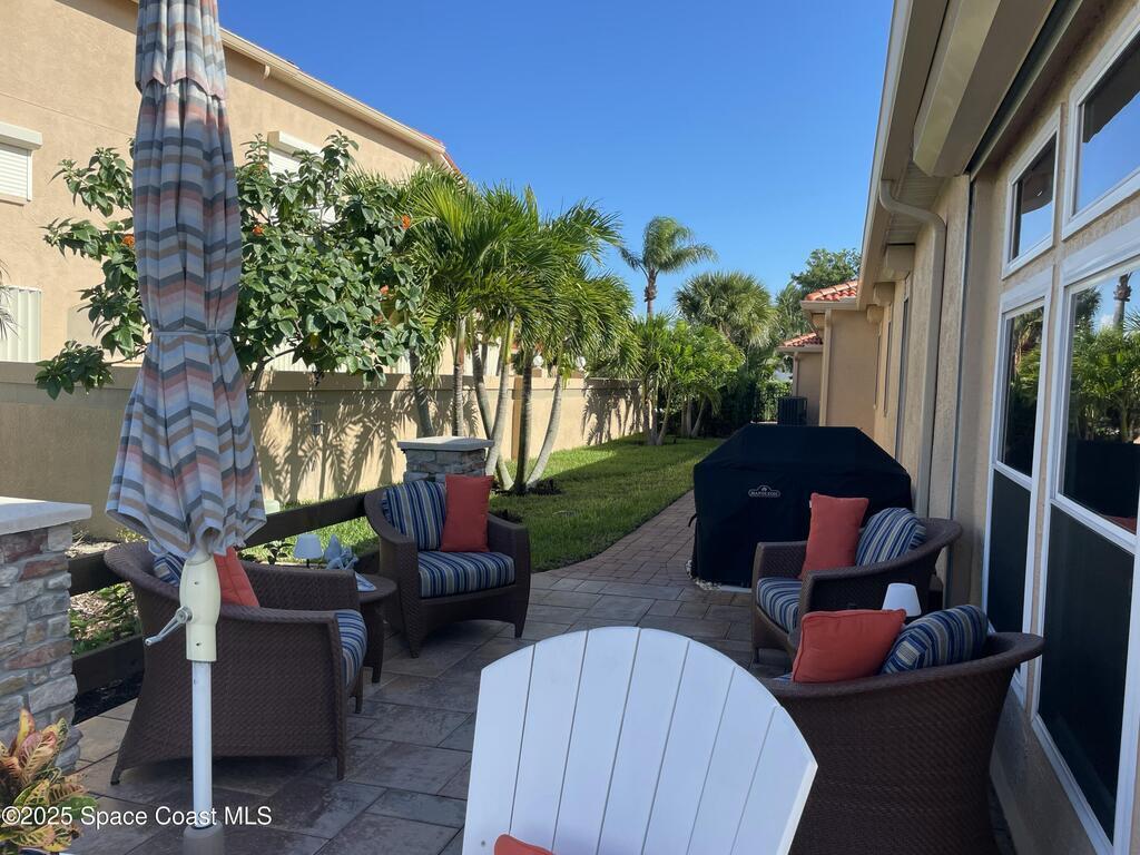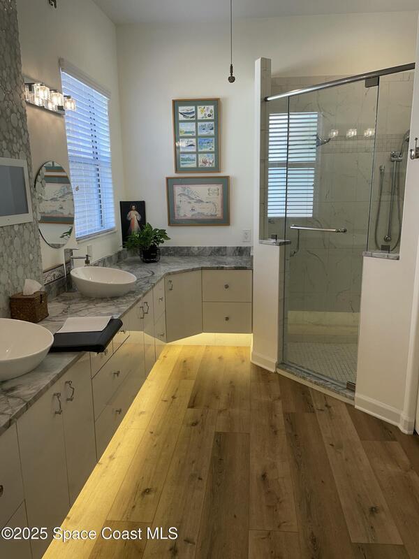 You just found your new Executive Style, Direct Riverfront, Barrier Island half Duplex in the highly sought after Gated community of Marina Isles!!! This Stunning 2 bedroom, 2 bath, 2 car garage, single story, half duplex, End Unit has been completely updated! As you enter the home you will be awestruck by the soaring high ceilings and impeccable craftmanship in everything from the Gourmet Chef's Kitchen with Wolf Gas Stove, and Bosch appliances, Granite Counter tops, solid wood cabinets, Faux painting, Imported tile and sooo much more. Approximately 3, 000 Square Feet all on one level. Formal Living and Dining rooms plus a very large Florida/Family room with Direct Banana River views! Nice size laundry Room with cabinets and hanging space. Hurricane Shutters for storm protection on all windows and doors. Your Private Paver Patio overlooks our wonderful Banana River and Marina. Enjoy Florida Beachside Living!!!