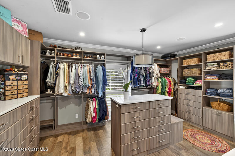 Beautiful Oak canopied corner .54 acre lot in well established town of Indian River Shores neighborhood. 3BR/4BA pool home - close pocket doors to create private 1BR/1BA + den in-law/guest wing with separate entrance, full kitchen & pool views or leave doors open for Grand sprawling estate. Ideal for home office. CBK construction w/impact glass window & doors. Whole house generator. Fenced yard with lush landscaping. Beach access within close proximity. Low annual HOA fee. Sizes are approximate and subject to change.