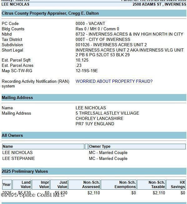 One great way for your ideal chance to create your dream residence, investment property, or merely to acquire land for future use. A .23 acre wooded lot in Inverness Acres is available for just $12, 000.00. It is conveniently situated just minutes from downtown Inverness, as well as shopping centers, educational institutions, dining establishments, lakes, boat ramps, and the rails to trails. This lot is 2.2 miles - 7 minutes to the Winn Dixie Supermarket, and 2.5 miles - 7 minutes to Citrus High School. From N. Independence Highway, go east on Monroe Street for .1 mile, slight right onto Long Avenue for .2 miles, and left on Adams Street. The lot will be on your left.