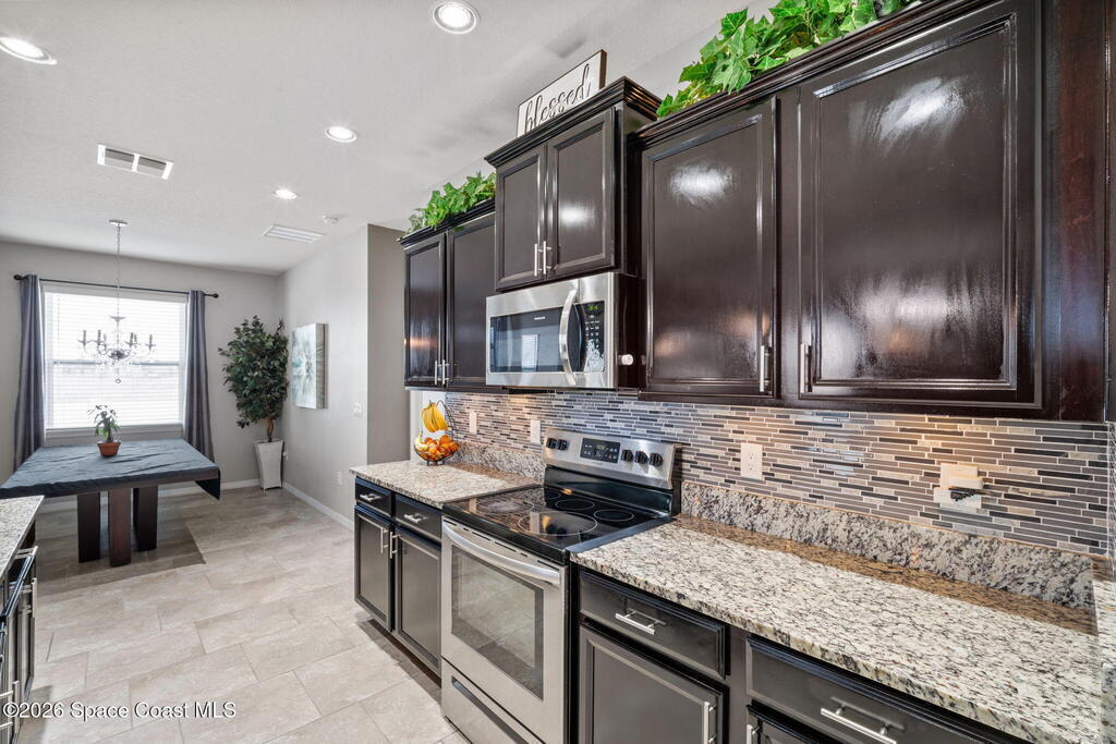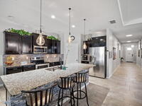 Beautiful move-in-ready home featuring 4 bedrooms, 3.5 baths, and the highly sought-after Camden floor plan with a private in-law suite and its own separate entrance. The main living area offers a bright, open kitchen with granite countertops, custom backsplash, and a water filtration system. Tile and luxury vinyl plank flooring flow throughout the home. A built-in entertainment center with an electric fireplace adds a warm, modern touch. The spacious bonus room is perfect for a home office, hobby room, or additional flex space. The private in-law suite includes its own kitchenette and full bathroom--ideal for multigenerational living or guests. Additional upgrades include: Smart-home technology Extensive camera system (some cameras convey) Renovated attic with custom electric lift Whole-home water softener Ceiling fans in every room Custom wine cabinet with extra storage Enjoy indoor-outdoor living in the large, enclosed Florida room, leading out to a beautiful paver patio