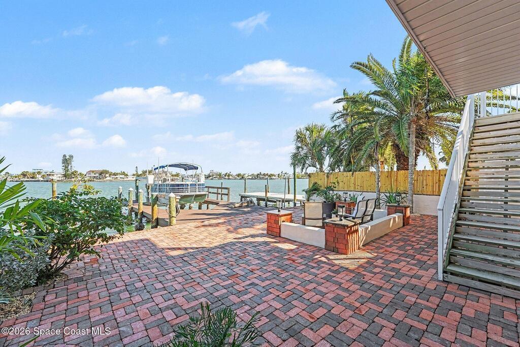 Coastal luxury living with sweeping views of the Gulf. This elevated waterfront 3 bed/3.5 bath home has TWO en-suites, an ELEVATOR, and a 3-car garage. The open-concept main level features a chef's kitchen, living and dining areas, all framed by breathtaking water views and abundant natural light. Private 3rd floor primary suite has its own balcony, two walk-in closets, and a spa-like bath with jetted tub and walk-in shower. 2nd en-suite offers Gulf views and a private balcony. Additional highlights: 2 wood-burning fireplaces, luxury vinyl flooring, and surround sound. Enjoy effortless waterfront living with a brick paver yard, mature palms, private dock, and 10, 000-lb BOAT LIFT with quick Gulf access. Watch dolphins, fish from your dock, and enjoy Madeira Beach fireworks from home. Updates include a 2023 roof and water heater, HVAC, fresh interior paint, dishwasher and refrigerator(2025). Just steps to the beach, minutes to John's Pass, shopping, and dining. A boater's paradise!