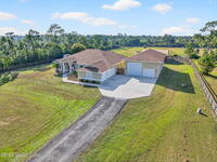 Equestrians, Boaters, Privacy! Gorgeous well-appointed Custom home on 5.84 Acres! Fenced & cross-fenced, ready for animals! 5 BD, 3 BA, 2005-built Concrete Block Structure w/ 3-Car Attached Garage w/2 hurricane doors. Detached 2018-built 1800 sq. ft. Shop/RV/Boat Storage w/12' roll-up door & a 7' back door & mini-split A/C. 4-Stall horse barn w/inside wash rack, feed/tack room, alleyway & covered space in back of barn for animals to get out of the heat. The home has a formal living room, family room, dining room, large kitchen w/lots of bar space, pantry, gas stove & an eat-in nook w/outdoor views! Split floorplan, Gutters all-around home & detached garage. The primary bedroom has bamboo floors, opens to back porch w/gorgeous views; there's a jacuzzi tub, closed toilet space & 2 closets (1 is walk-in). The laundry room has a deep laundry tub, shelves & storage. Large back porch w/new fans. 5th Bedroom has a large closet & makes a perfect office w/a view. Read on........