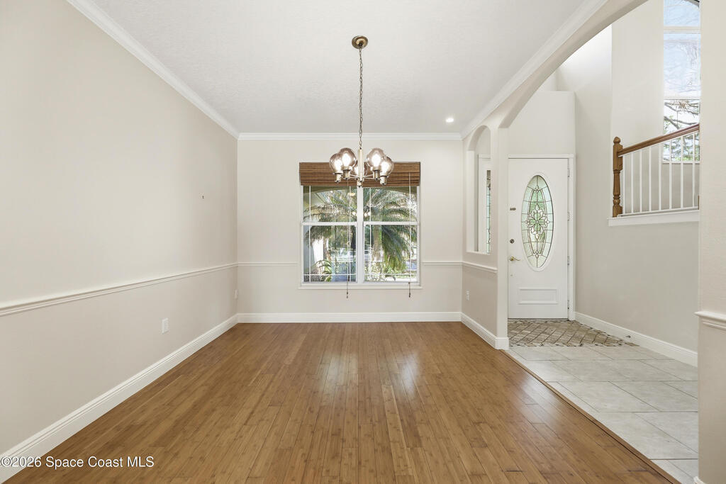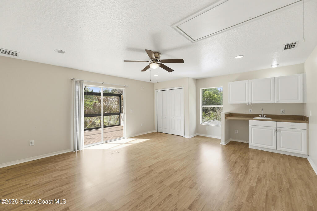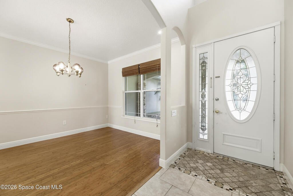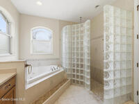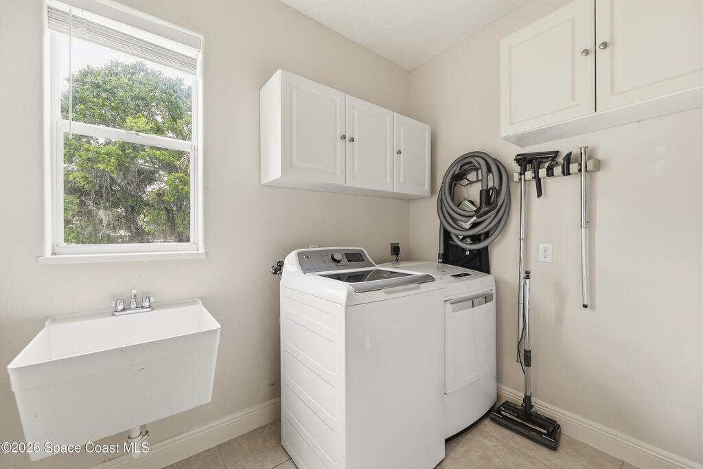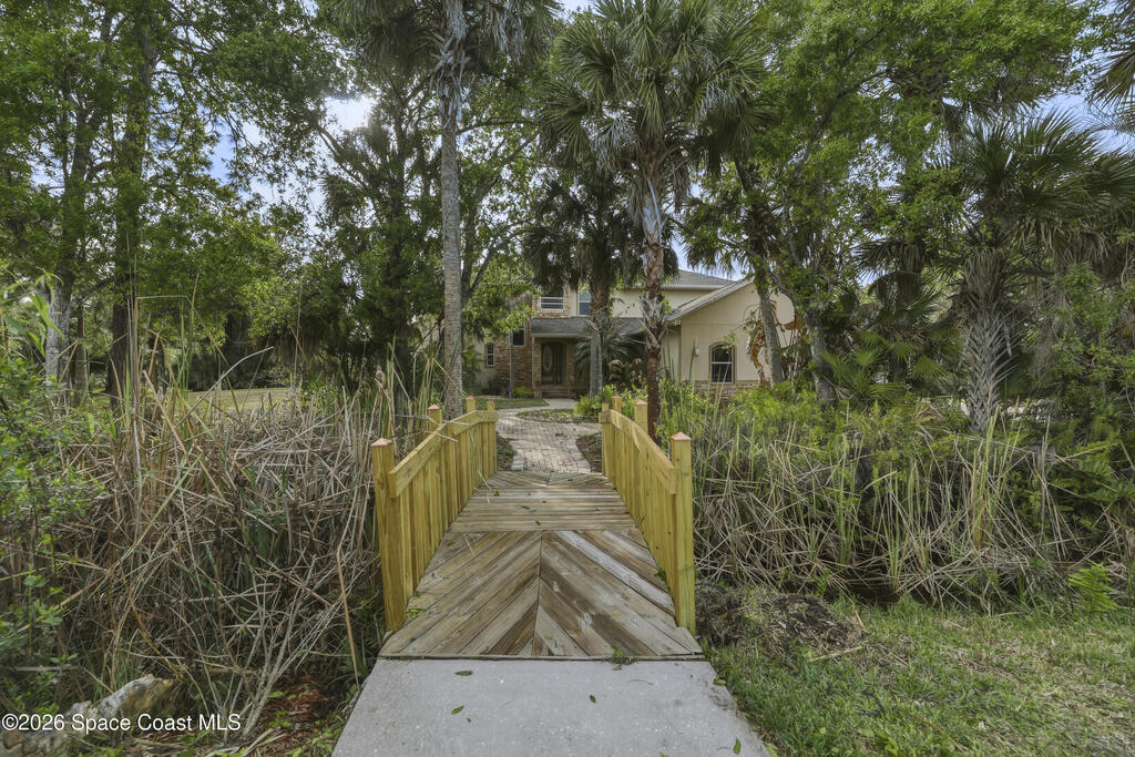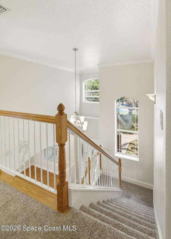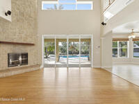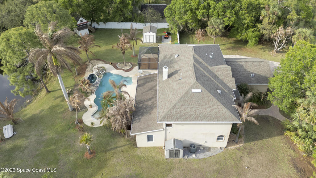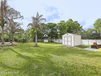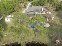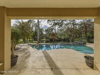 Experience the ultimate in Florida living with this stunning 5-bedroom, 4-bath estate set on a spacious private lot surrounded by majestic specimen trees. A serene, organically designed saltwater pool and spa create the perfect oasis for relaxation, entertaining, or enjoying sunny days outdoors. Inside, a dramatic double-height living room welcomes abundant natural light, while the first-floor primary suite offers privacy and an ensuite bath, complemented by a cabana bathroom for poolside convenience. Upstairs, newly remodeled bathrooms add a fresh, modern touch. Thoughtfully equipped with two A/C units, laundry rooms on both levels, a spacious media and family room opening to a screened terrace, a 2-car garage, and storage sheds, this home blends comfort, style, and practicality. Just minutes from Palm Bay-Melbourne, it is a rare rental opportunity to embrace space, tranquility, and refined living.