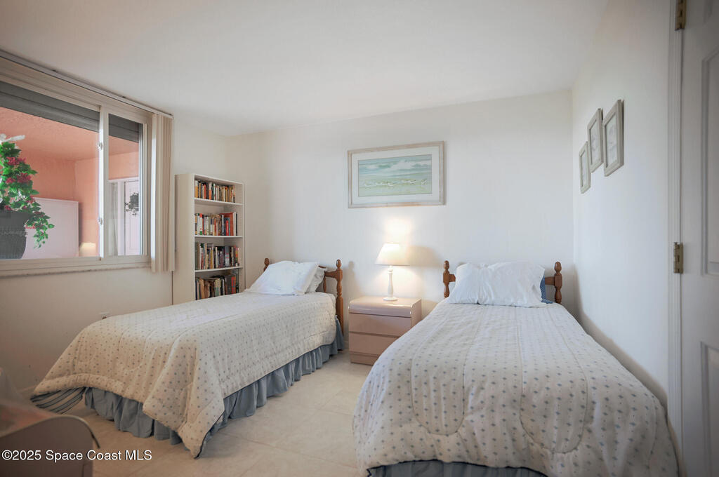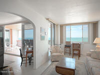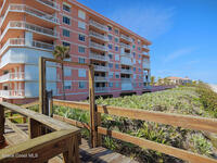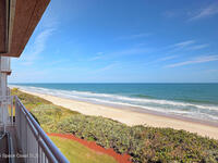 Stunning one level, 4th floor DIRECT oceanfront condo has the best views of rocket launches and sea turtles nesting and hatching right from your balcony. Spacious condo has tile floors throughout and is the perfect height to view both the sunrise over the ocean and the sunset over the Indian River. In addition to three bedrooms and 3 full baths there is a bonus space that is perfect for workout spot, overflow guests, or office. Recently replaced AC/Heating inside and out. RARE TO FIND!!!! TWO CAR GARAGE indoor parking spaces along with 2 storage closets. Building freshly painted. Love the great room and huge balcony overlooking the ocean, sand and occasional beach stroller. Breakfast nook has amazing views of sunsets. Hurricane shutters for added peace of mind. Community offers two elevators, secure lobby, huge heated pool and hot tub, Tiki Hut, full time maintenance manager and assistant, workout room and endless expansive beach that is perfect for long walks.