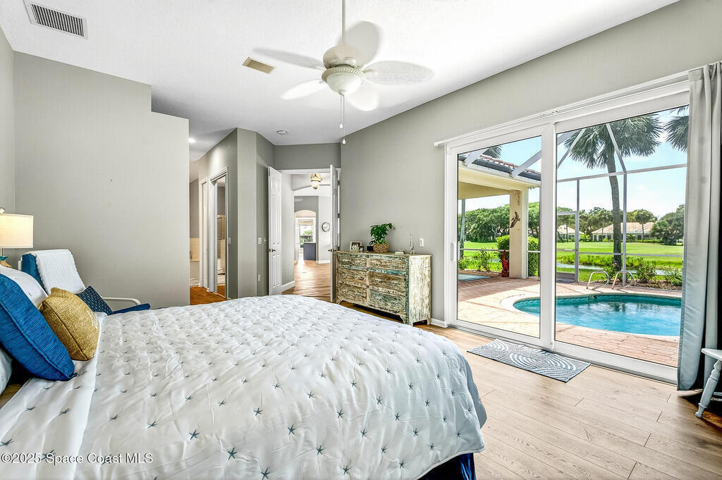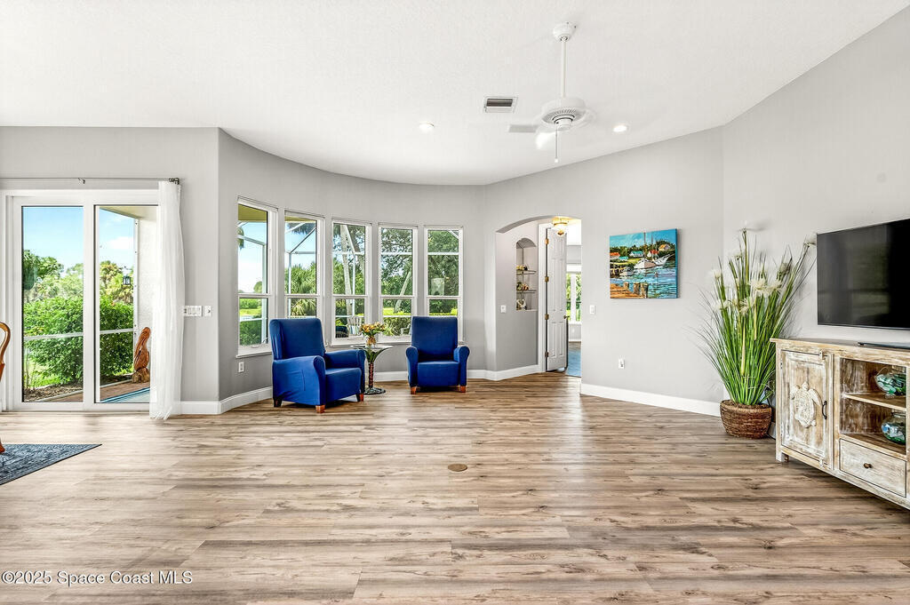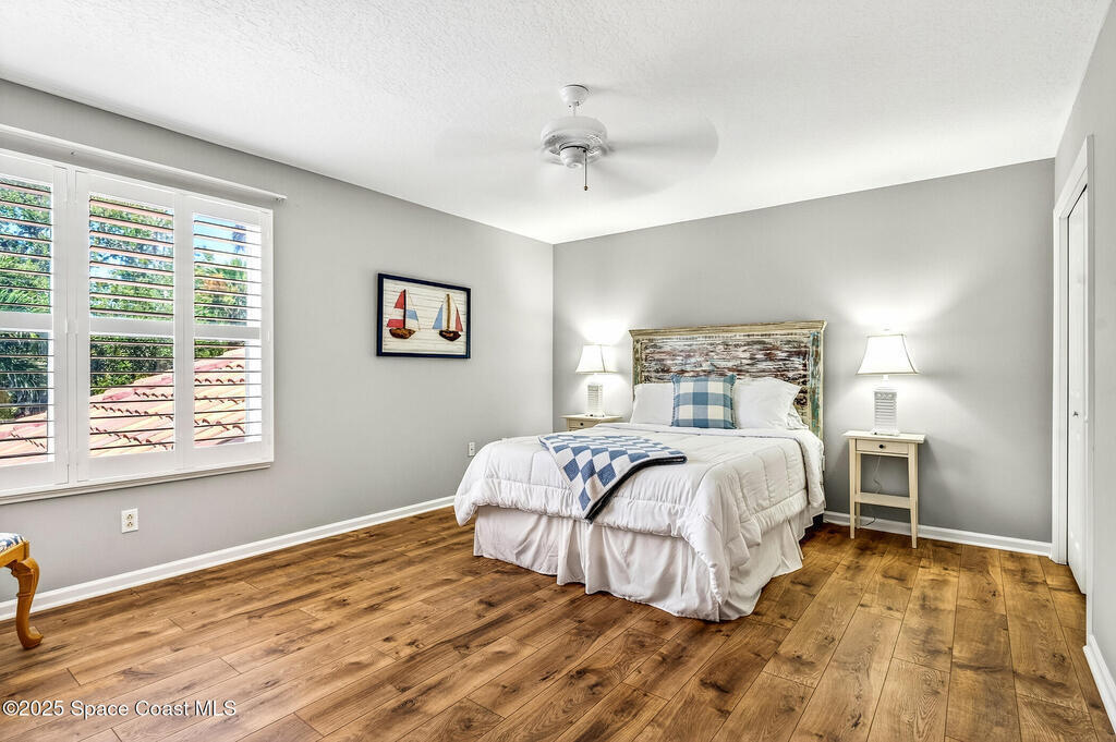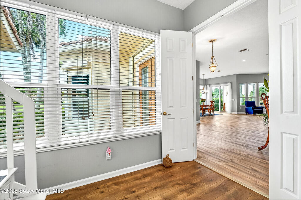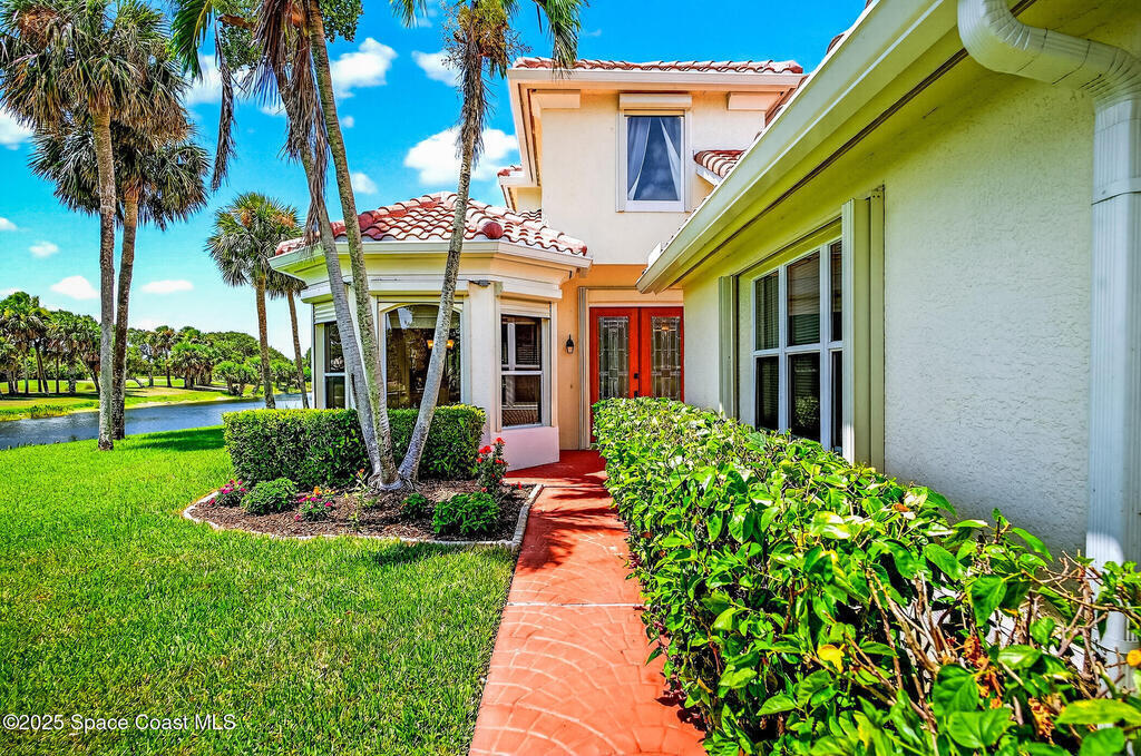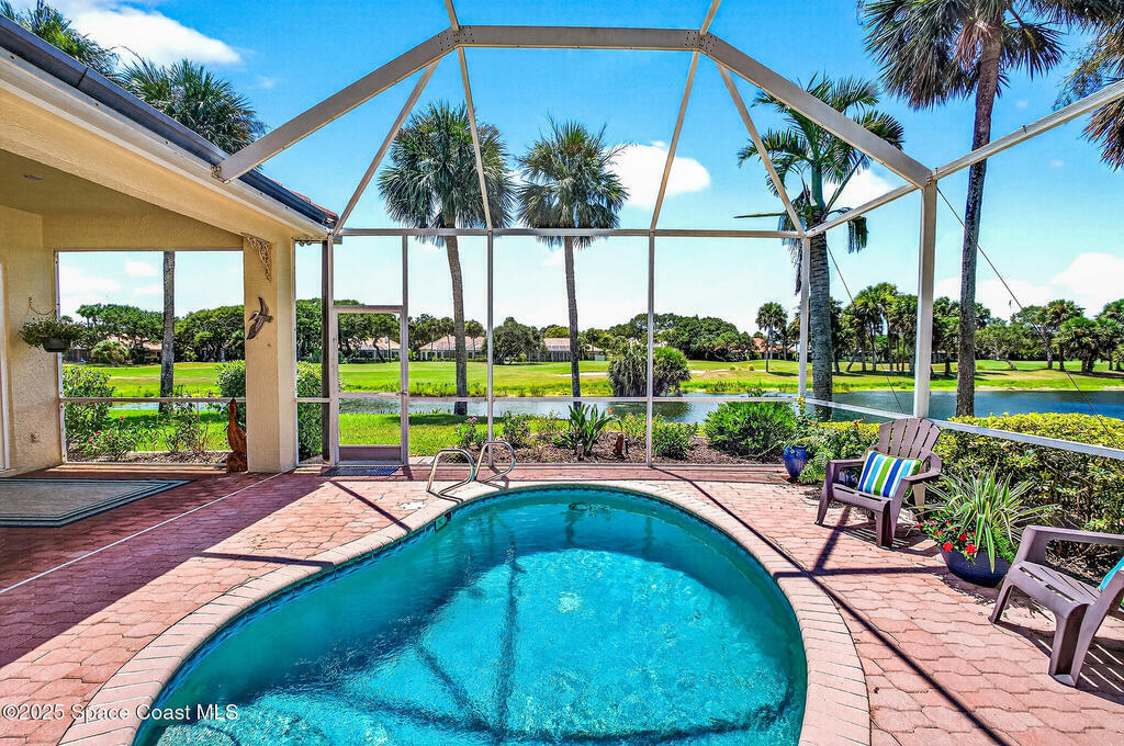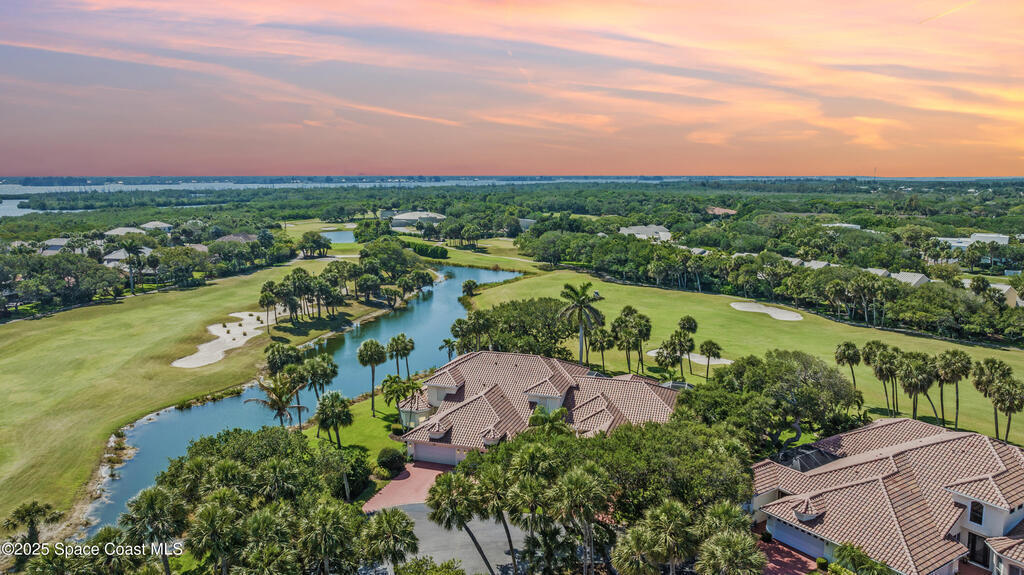 Welcome to Osprey Villas at Aquarina Beach & Country Club - where sweeping golf and water views meet resort-style living. Tucked at the end of a quiet cul-de-sac, this spacious 4BR/3BA villa offers one of the largest floor plans & effortless indoor-outdoor living. Enjoy golden sunsets & tranquil water views from almost everywhere. The main level features vinyl plank flooring, impact windows/sliders, a generous living/dining area, eat-in kitchen, owner's suite with direct access to the pool, guest room/den plus a full bath. Upstairs, 2 bedrooms, a guest bath, loft office, and media/bonus room create a perfect space for hosting family & friends. With a newer roof (2024), 2 car garage & panoramic views throughout, this home is a rare opportunity & ideal seasonal escape.Enjoy beach, golf, tennis, fitness, riverfront amenities in this gated ocean-to-river community offering resort-style living on Florida's Space Coast, where rocket launches & sea turtles hatchlings are part of the view.