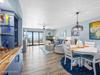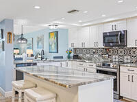 MOTIVATED SELLER, ALL REASONABLE OFFERS CONSIDERED! Step into this COMPLETELY RENOVATED riverfront condo & enjoy breathtaking river views from nearly every room! Every detail of this home has been beautifully updated from top to bottom featuring custom tile work, luxury vinyl plank flooring & tile in the bathrooms for a maintenance-free lifestyle. The spacious kitchen showcases soft-close cabinetry, granite countertops, a large island & new appliances. A new hot water heater, custom lighting/fans & built-in shelving in the living room add thoughtful touches. Have peace of mind w/impact windows & doors, plus electric hurricane shutters for added protection. Step out onto your waterfront balcony & take in the unmatched river views. Located in a gated, community, residents enjoy access to 2 sparkling pools, a fitness center, spa, pickleball courts, parking garage, & community dock. Come & see this active community for all ages! Private community beach entrance!!