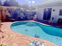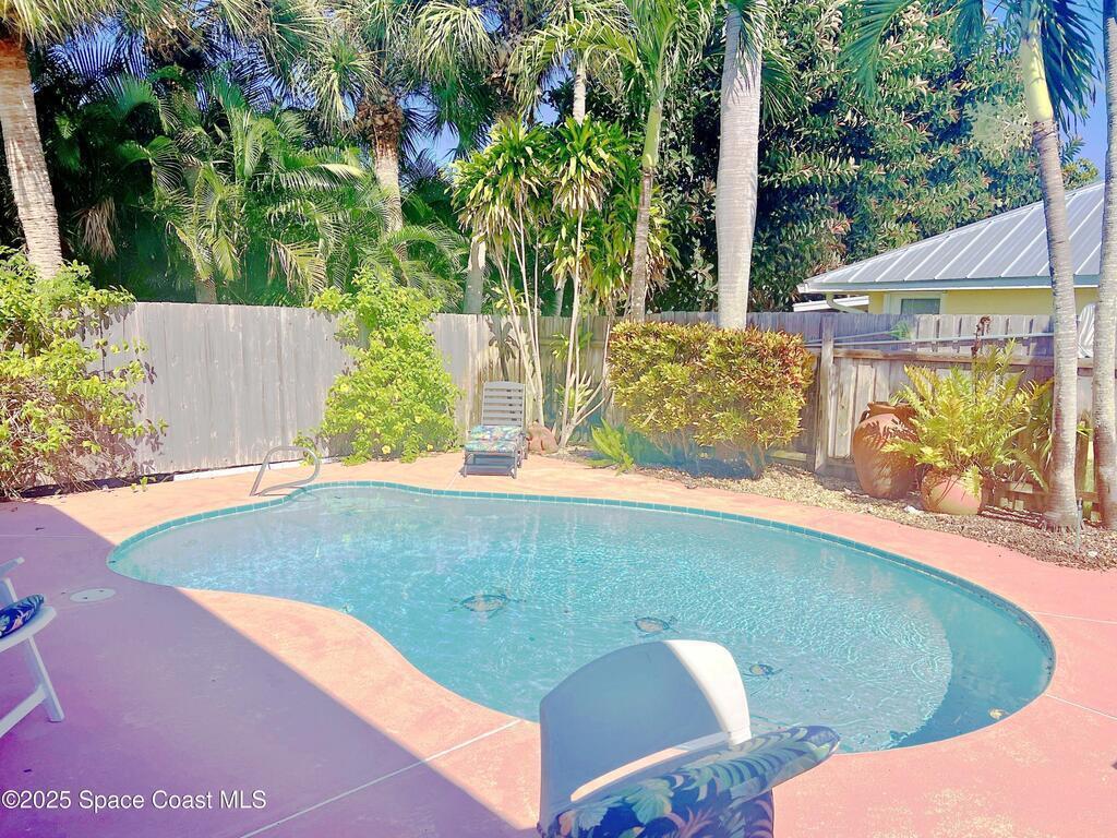 Relaxing Beachside Pool Rental Home - Steps from the Ocean! This cozy beachside rental property sits on a quiet dead-end street nestled between the Atlantic Ocean and the Indian River Lagoon -- just one block from the beach. Spend your days swimming, biking, fishing, surfing, or boating, and your evenings relaxing by the pool while barbecuing your favorite meal. The home features 3 bedrooms, 2.5 baths, plus a loft with a trundle bed; plenty of space for everyone to spread out and sleep up to 8 guests. It's fully furnished and stocked with everything you need, including linens, towels, beach toys, beach towels, and a fully equipped kitchen. Outside, enjoy the refreshing private pool, a retractable awning for shade, and an outdoor shower. There's also a carpeted screened porch with a table and chairs, plus pool toys, lounge furniture, a gas grill, and bicycles for exploring the neighborhood. What's included: Pool and lawn care, garbage service, and plenty of sunshine!