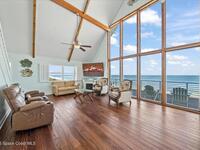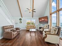The ocean views from this stunning three story direct oceanfront home will impress! This house boasts 6 bedrooms/3.5 baths and new roof in 2021. It has two kitchens, a lofted office and options to lock off different suites to accommodate multi generational living and guests that visit.. There is a wall of floor to vaulted ceiling windows in the great room over the ocean that brings the ocean front and center and floods the space with natural light. It is such a bonus to have two kitchens and a layout like this that has one suite downstairs and another on the second and third level. A deep, wrap around balcony provides a perfect spot to relax and enjoy the scenery. The property offers direct access to quiet beaches, perfect for leisurely strolls and water activities. This home is ideal for a peaceful retreat on the coast. Long driveway and turn around make for easy access to A1A. Bike path across street from home goes on for miles and miles. Super quiet location in Melbourne Beach.