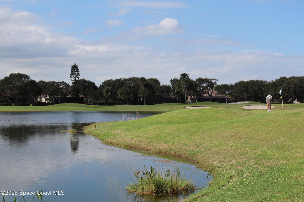 Beautiful Townhome on the 18th Green in the Gated Aquarina Beach & Country Club CommunityThis lovely 3-bedroom, 2.5-bath home offers an open floor plan, high ceilings, and inviting coastal furnishings. The main-floor primary suite provides convenience and comfort with a full bathroom, two closets--including a walk-in with extra storage.Upstairs, you'll find two additional bedrooms, a full bathroom, and an open den/office area, perfect for work or relaxation.Take in stunning sunset views from the screened-in patio or the private upstairs balcony overlooking the golf course.Residents enjoy deeded BEACH and RIVER access, optional golf and tennis memberships, a private fitness center, beach clubhouse, community center, and the newly renovated Aqua Bar & Grill by the Aquarina Golf Pro Shop.This home embodies the ultimate Florida lifestyle.
