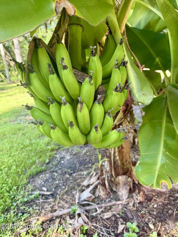 Discover off-grid paradise just steps from the ocean. This three bedroom, two bath home with a two car garage blends coastal living with self-reliance. A full solar array and whole-home battery keep you powered for a day or more, complemented by a true artesian well with a backup hand pump. Inside, enjoy the comfort of a new Trane HVAC system. Outside, unwind on a serene 0.45-acre lot that backs to wooded areas for privacy and quiet. The backyard is a tropical food forest with fruiting coconuts, bananas, avocados, and mature oaks, and you might even spot blue land crabs. You are just north of Sebastian Inlet and Long Point Park, so surfing, fishing, boating, canoeing, and kayaking are all at your fingertips. From the deck you can listen to the waves and even catch rocket launches on the horizon. With no HOA, low county taxes, and convenient Sprouts delivery, this is the relaxed coastal lifestyle you have been looking for.