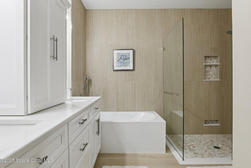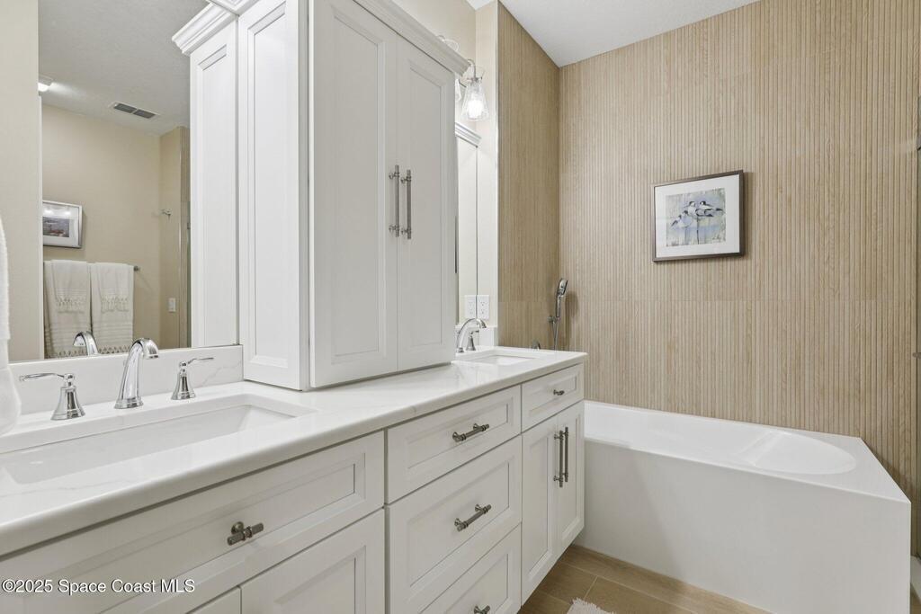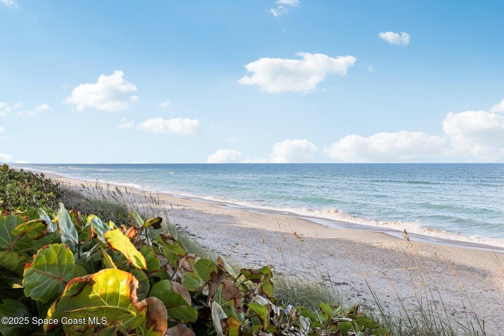 Amazing opportunity to own a beautifully renovated townhome in the prestigious barrier island, ocean to river, Aquarina Beach & Country Club. This fully updated home features new luxuryvinyl flooring throughout, solid-core doors, upgraded baseboards and window trim, a completelyremodeled kitchen with high-end BOSCH appliances including a 36'' Thor range and fullyrenovated bathrooms with upgraded showers and vanities. Additional improvements include a new AC (2025), new ceiling fans, a whole-house water filtration system, hurricane accordion shutters, and a 2021 roof maintained by the HOA. Enjoy the newly renovated enclosed Florida/sun room with built-in cabinetry, perfect for an office, along with peaceful views overlooking the golf course. The garage offers new epoxy flooring, sturdy storage racks, andextra storage pantries. This 2-bedroom, 2-bath split floor plan features vaulted ceilings, makingit truly move-in ready with