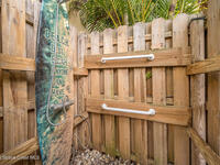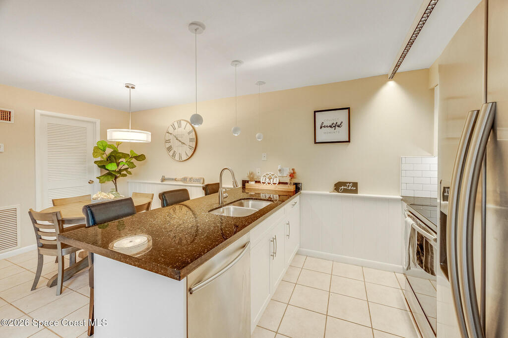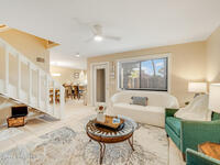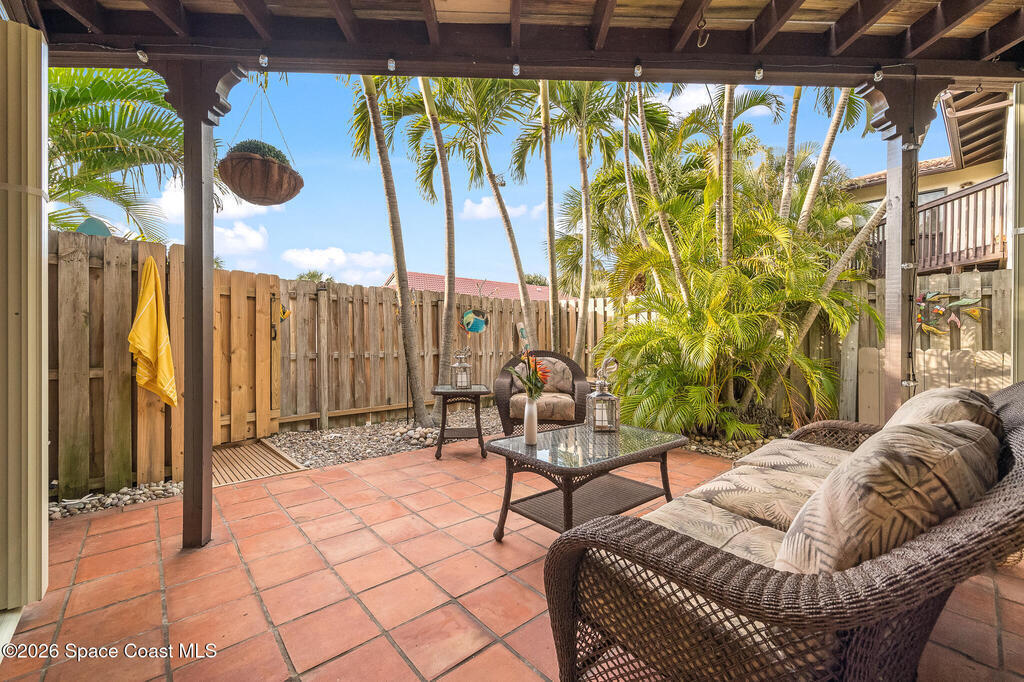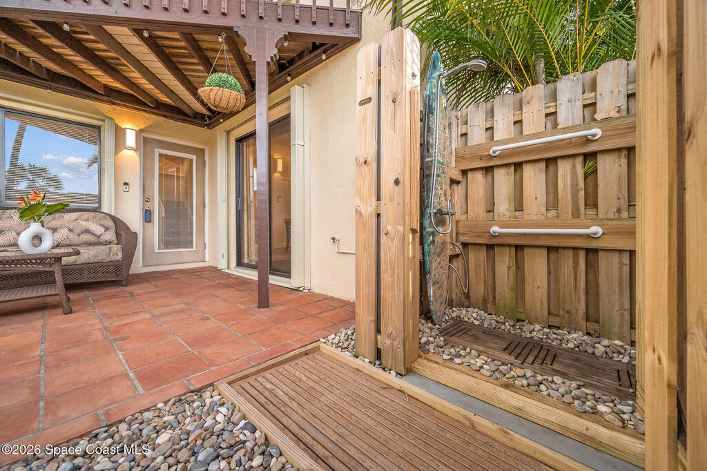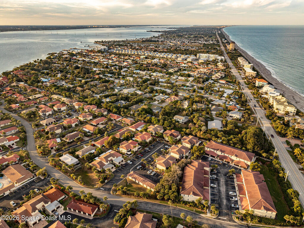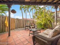 Where else can you live just 412 feet from the Beach at this price? Secure your own slice of coastal living in this updated townhome, perfectly positioned between the Intracoastal Waterway and the ocean. Start your mornings with an easy walk to the shoreline for sunrise and sea-turtle season, and spend evenings enjoying sunsets from your private lanai or with neighbors at the pier.This 2-bedroom, 1.5-bath townhome has been thoughtfully updated, offering abundant natural light and sleek new fixtures that enhance the clean, modern feel. The lanai features an outdoor shower, accent lighting, and Christmas Palms, creating a tranquil retreat after beach time. The upstairs balcony also features lighting, ideal for unwinding and taking in coastal breezes.Residents enjoy low HOA fees and a well-maintained, activity-rich community offering two pools, a fitness center, tennis, pickle-ball, shuffleboard, a clubhouse, and more--all within a short walk of beach access